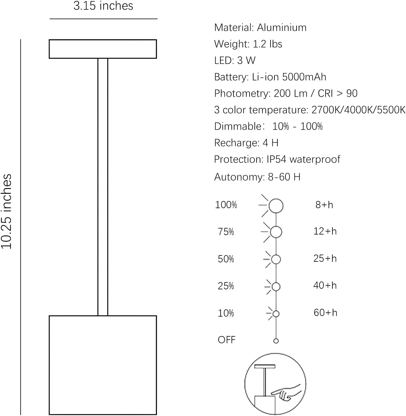 - Product Dimensions : 3.15"D x 3.15"W x 10.23"H