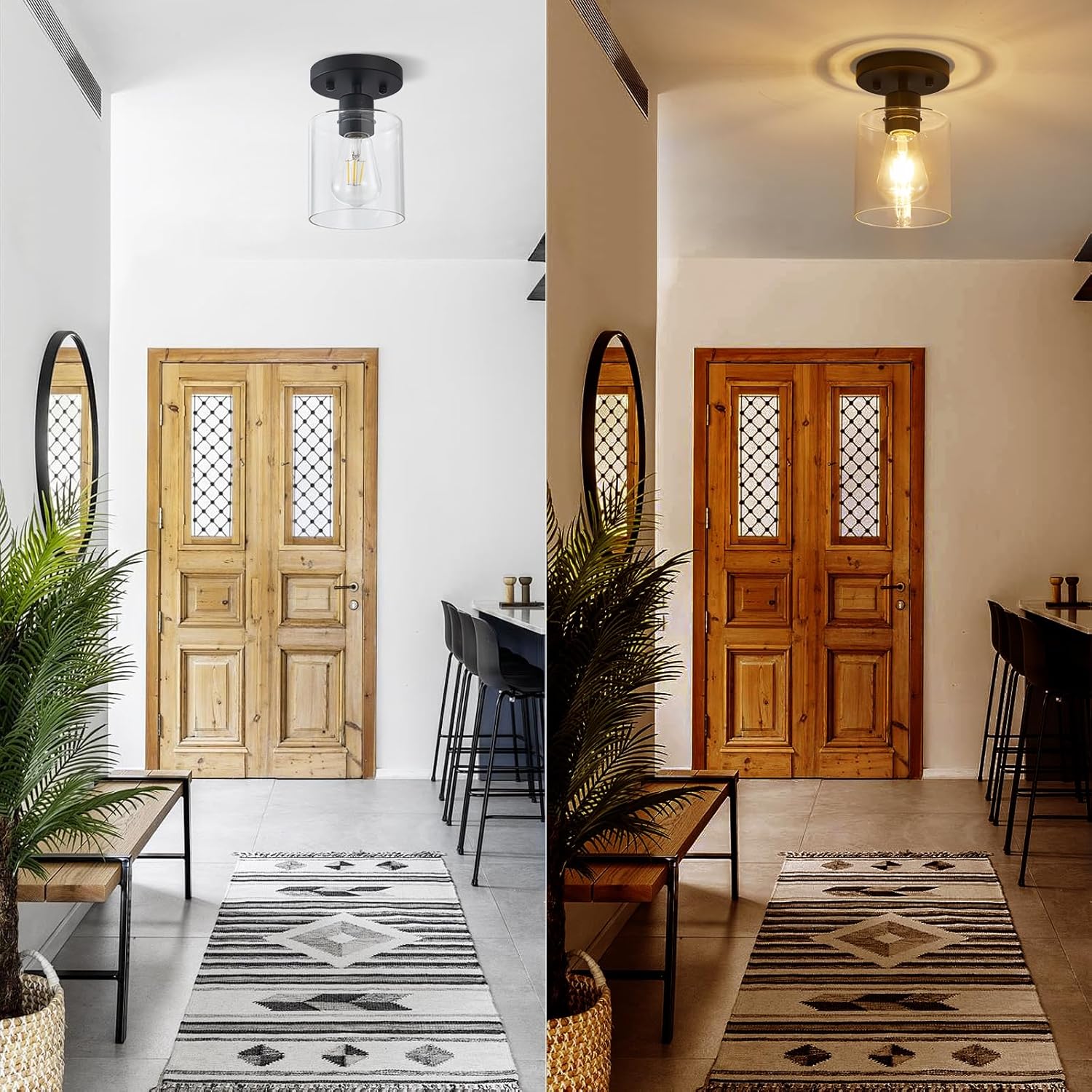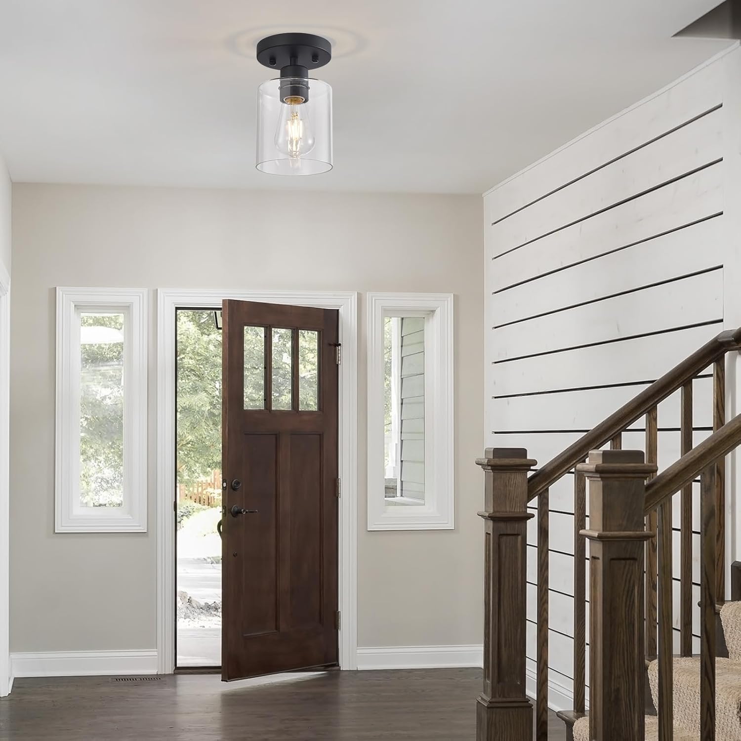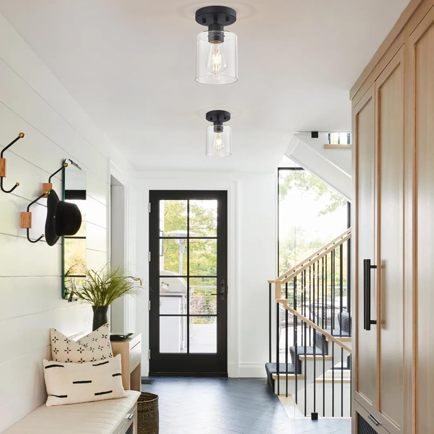 1 Light Semi Flush Mount Ceiling Light Black Kitchen Lighting Fixtures Ceiling Light Fixtures Small Hallway Lights with Clear Glass Shade for Bedroom Set of 2