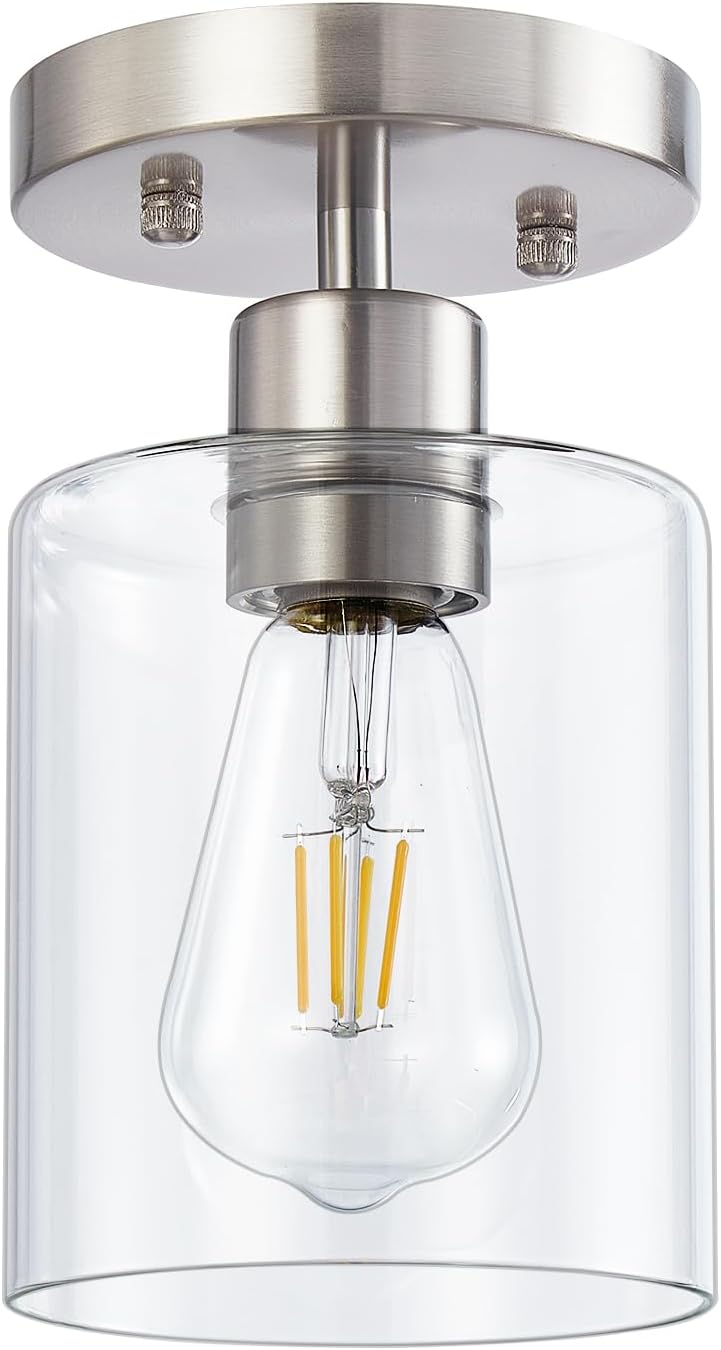 - [Design & Concept]: DIDUIO 1-light ceiling light fixtures is a newly designed modern style product, size: 4.73'' L x 4.73''W x 9.0'' H (Bulbs Not Included). semi flush mount light fixture with brushed nickel metal & clear glass shade design, increasing the brightness by 20%, solving the difficulty of insufficient brightness, perfectly interpreting of Noble and elegant temperament(Note: this is 1 pack)