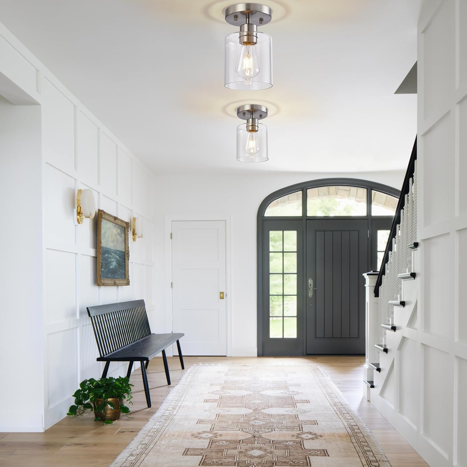 1 Light Semi Flush Mount Ceiling Light, Brushed Nickel Ceiling Light Fixtures, Modern Light Fixtures Ceiling Mount, Ceiling Lights with Glass Shade for Hallway Kitchen Foyer Porch Bedroom-1pack