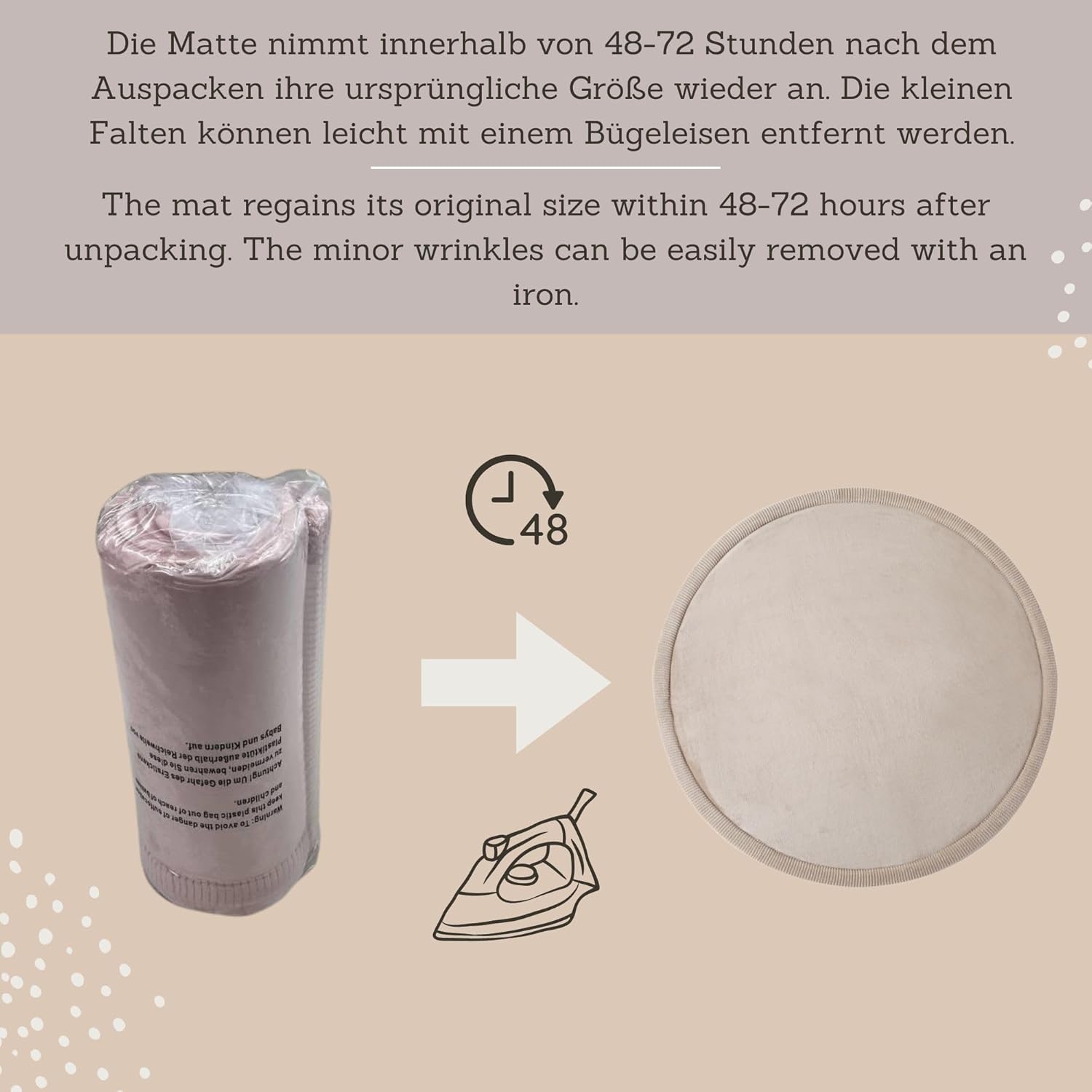Hakuna Matte Coral Velvet Baby Play Mat Ø 47" Beige – High-Density Memory Foam Area Rug – Playmat for Floor with Non-Slip Backing for Crawling, Playing & Tummy Time