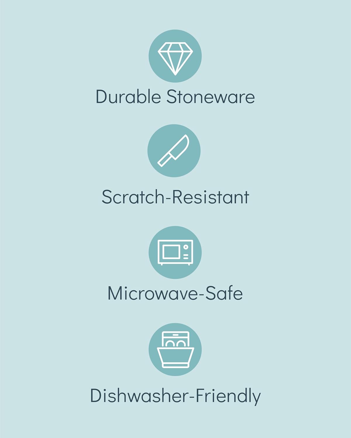 • ✅ DURABLE QUALITY THAT LASTS: Each piece is crafted from high-quality stoneware with a fired, glazed, and scratch-resistant finish, perfect for those who appreciate durability and refined style in their dinnerware.