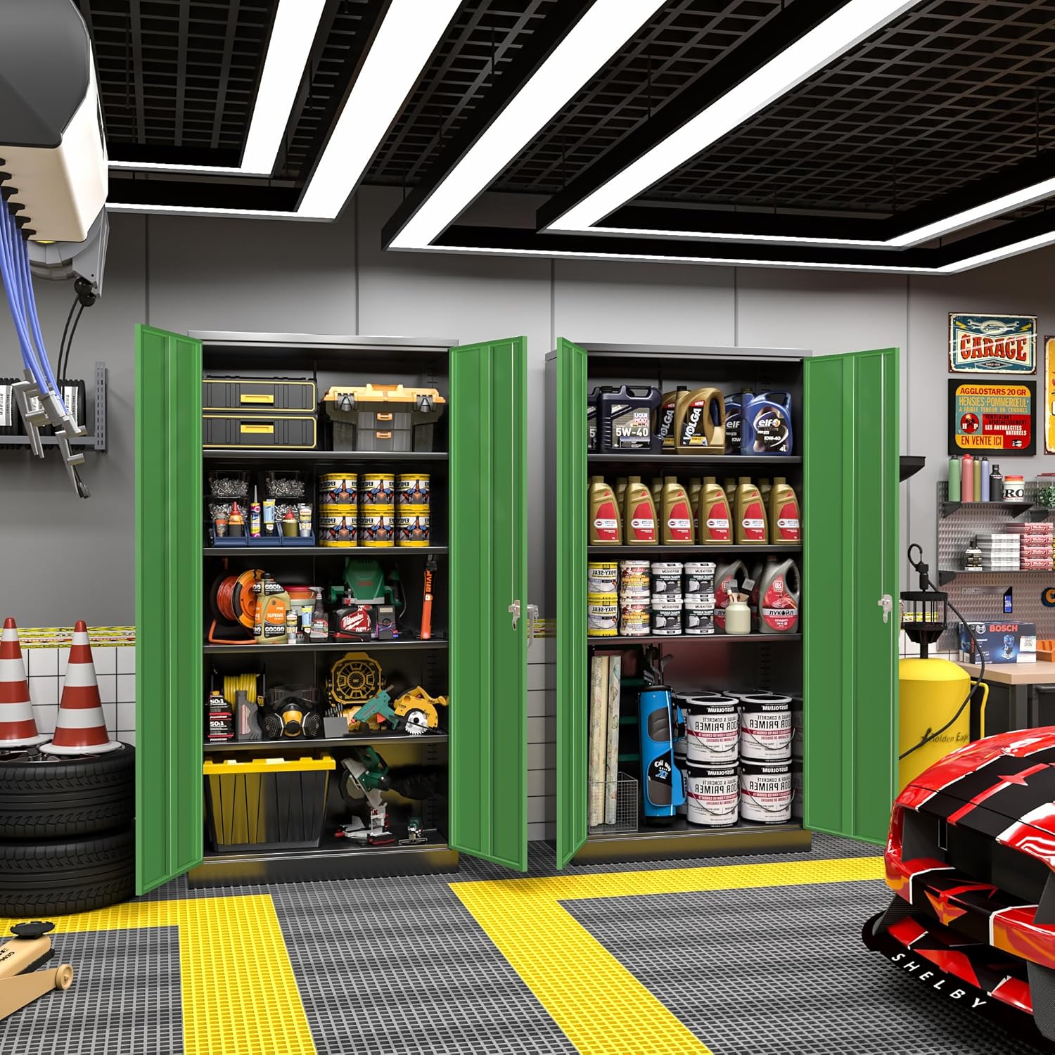 Greenvelly Metal Garage Storage Cabinet with 2 Doors and 4 Adjustable Shelves, 72”H Steel Lockable Storage Cabinet,Tall Metal Cabinet Locking File Cabinet for Office,Home, Garage, Gym, School