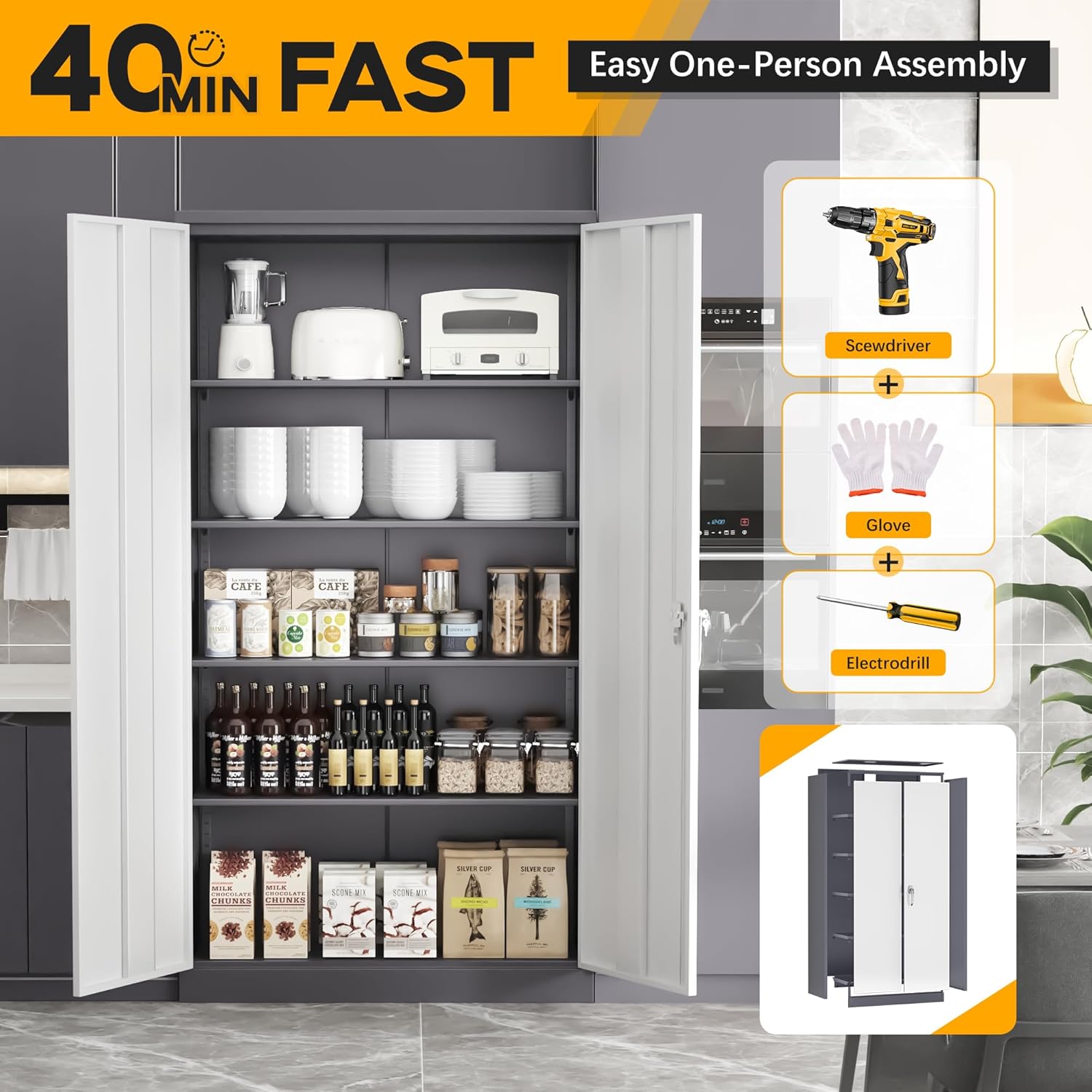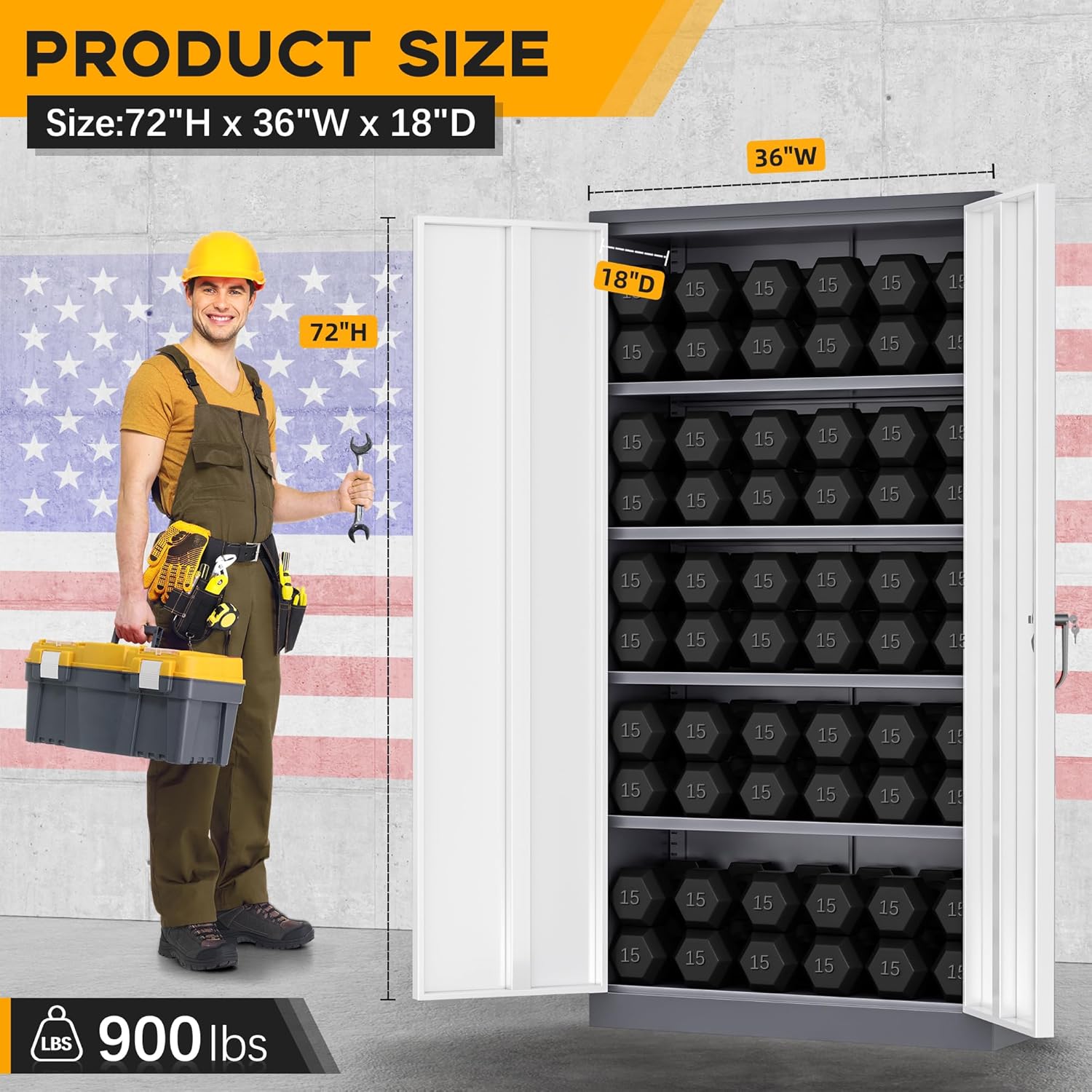 Greenvelly Metal Garage Storage Cabinet with 2 Doors and 4 Adjustable Shelves, 72”H Steel Lockable Storage Cabinet,Tall Metal Cabinet Locking File Cabinet for Office,Home, Garage, Gym, School