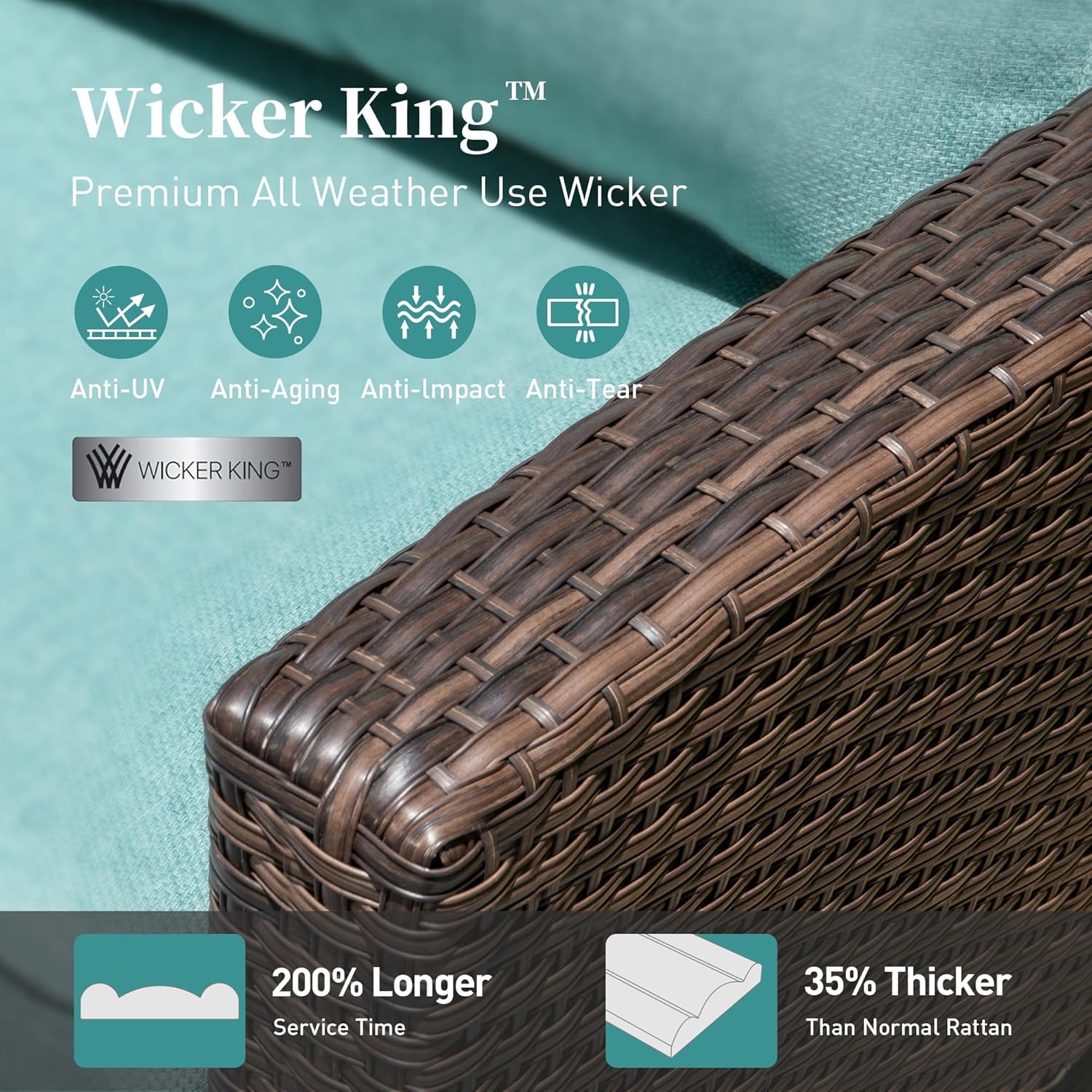 - Wicker King - Premium Rattan:The premium rattan has 100% UV protection and is reinforced on both rattan edges, which is 25% thicker than normal rattan and can prolong the service hours of the rattans. With this 100% handcrafted premium rattan,this sofa couch set has great performance in all weather like rain, intense sun exposure, suitable for year-round outdoor use
