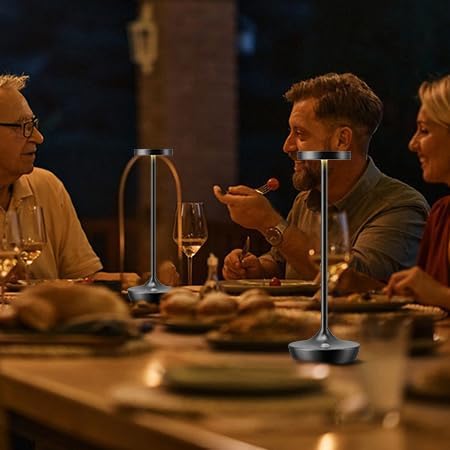 - 【IP54 waterproof table lamp】: The metal aluminum alloy structure of the table lamp has IP54 waterproof design, even in outdoor rainy days. The bottom of cordless table lamp features a non-slip design and soft silicone, which prevents the lamp from tilting and scratching the tabletop in windy weather. It is an ideal lighting fixture for indoor and outdoor places such as restaurants, kitchens, patios and outdoor camping.