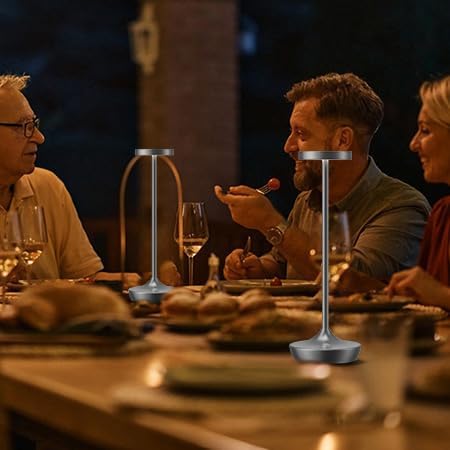 - 【IP54 waterproof table lamp】: The metal aluminum alloy structure of the table lamp has IP54 waterproof design, even in outdoor rainy days. The bottom of cordless table lamp features a non-slip design and soft silicone, which prevents the lamp from tilting and scratching the tabletop in windy weather. It is an ideal lighting fixture for indoor and outdoor places such as restaurants, kitchens, patios and outdoor camping.