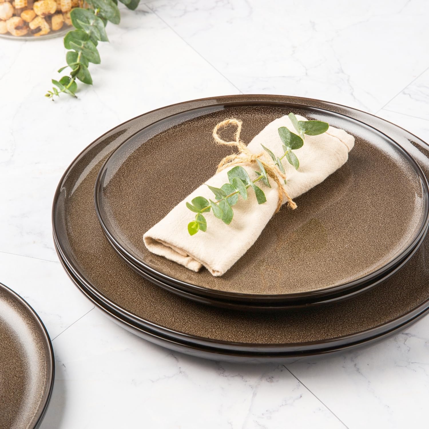 - 【UNIQUE AND SCRATCH RESISTANT】Our plates are fired with two different glazes,The reactive glaze make every plate is unique,Since our glaze is all-natural reactive finish, the surface of plates would change color on lighting,So Our glaze is also extra strong to prevent scratches from your knives and forks.