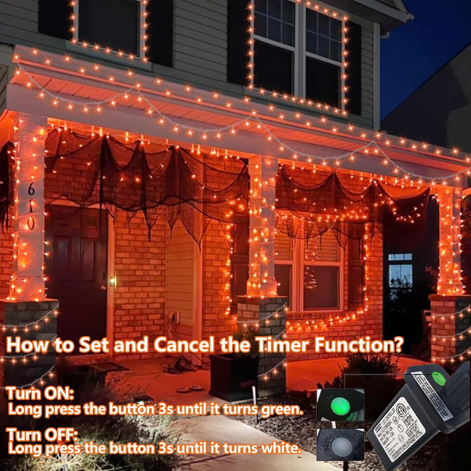 - Orange Lights for Halloween Decorations: Super surprise and terrifying orange that you can't wait to decorate with them for the holidays. Light up the night with our Halloween orange string lights for a mysterious and scary Halloween atmosphere.