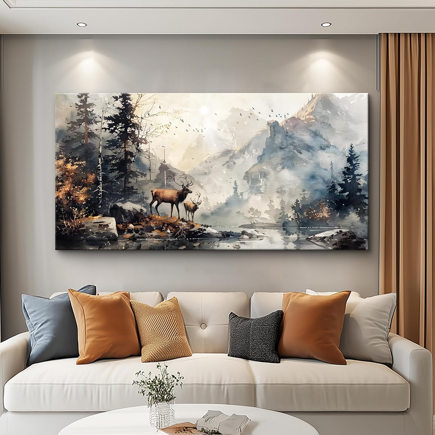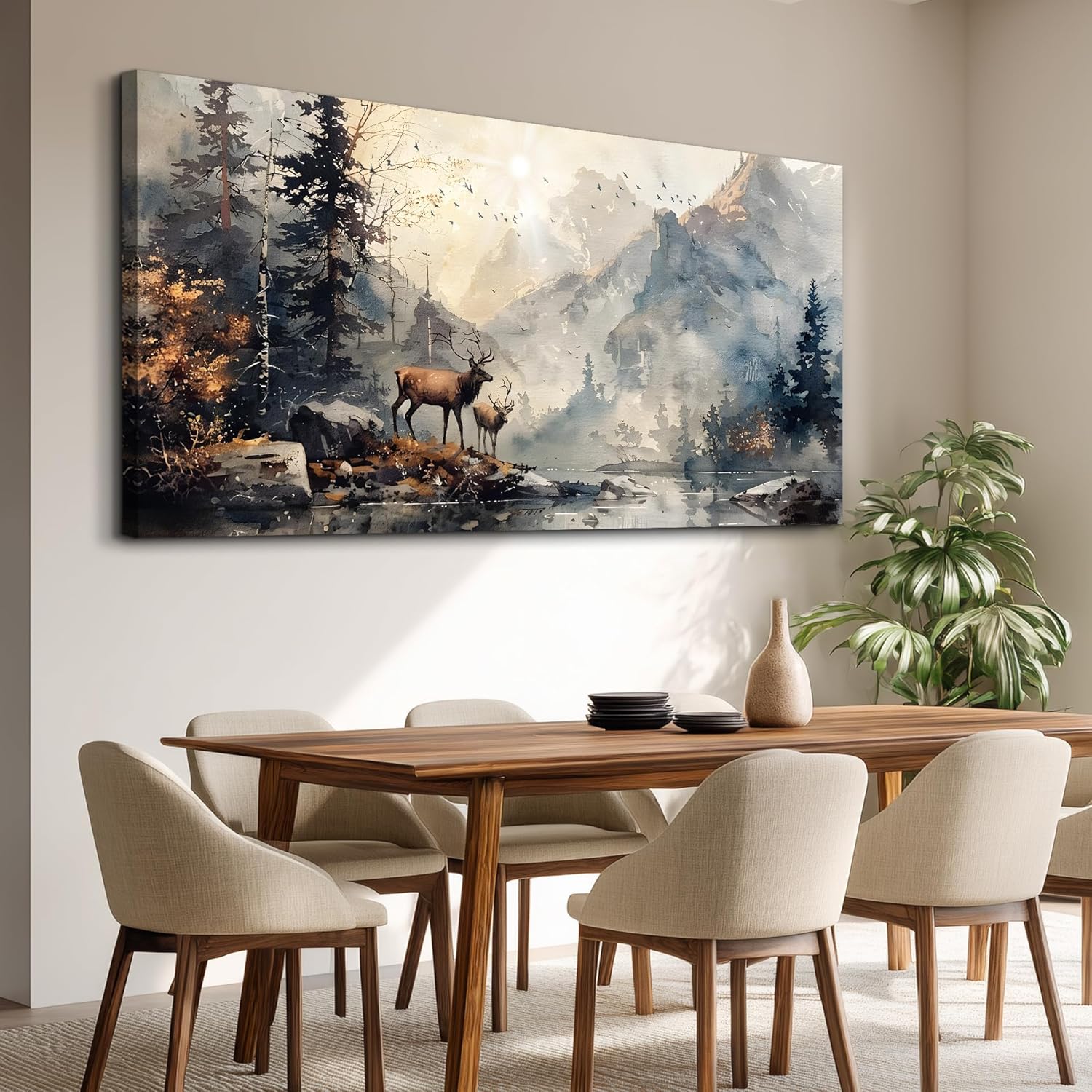 FUHAIHUA Large Wall Decor For Living Room Canvas Wall Art For Office Bedroom Wall Pictures Mountain Forest Landscape Ink Painting Deer Poster Artwork Room Home Decor Modern Aesthetic Mural 30x60 In