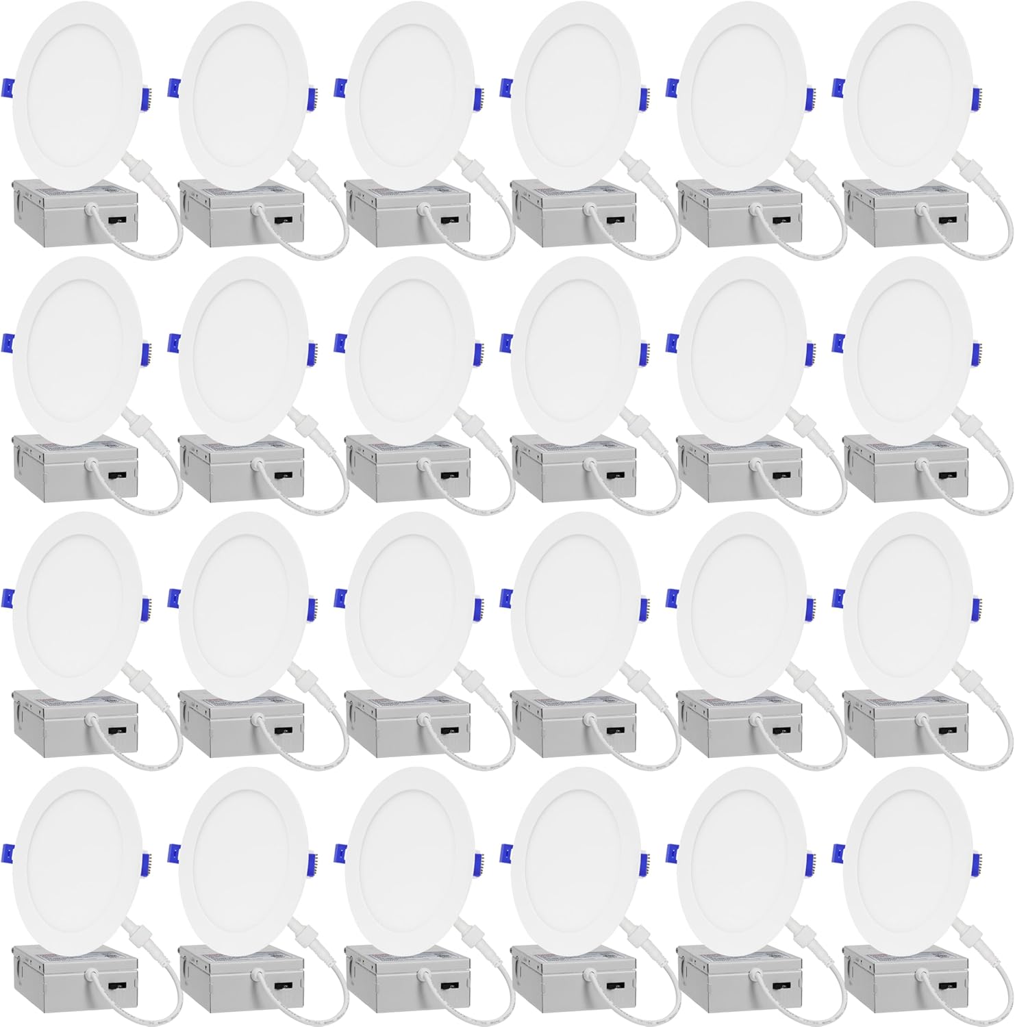 LAMPHOME 24-Pack of 6-Inch Slim LED Recessed Lights with Junction Box, Adjustable Color Temperatures (2700K-5000K), 12W Equivalent to 110W, Dimmable, 1050LM Brightness - ETL and Energy Star Certified