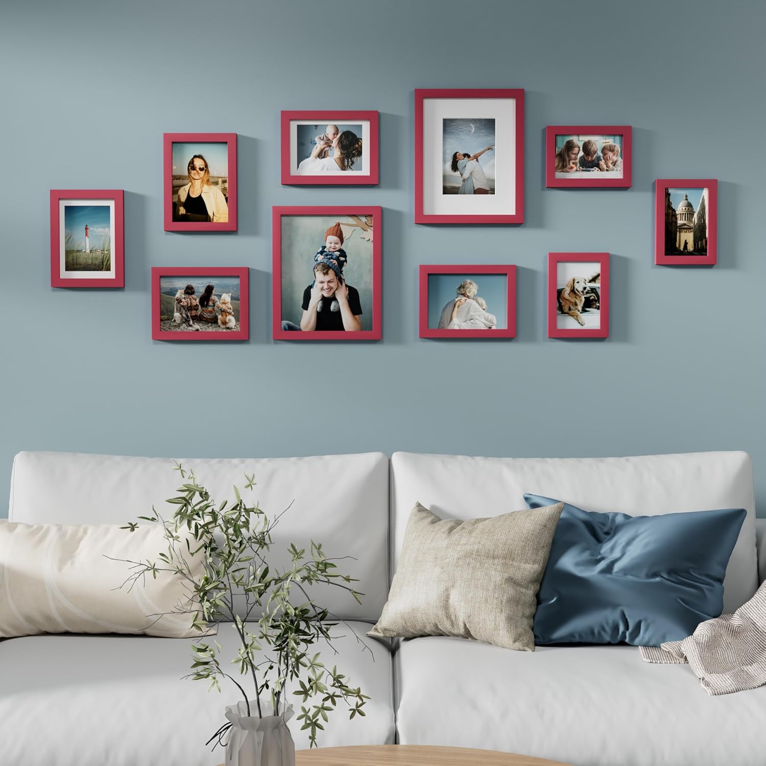 Vittanly 10 Pack Picture Frames Collage Wall Decor, Gallery Frame Set for Wall Mounting or Tabletop Display, Multi Sizes Including 2pcs 8x10, 4pcs 5x7, 4pcs 4x6, Red