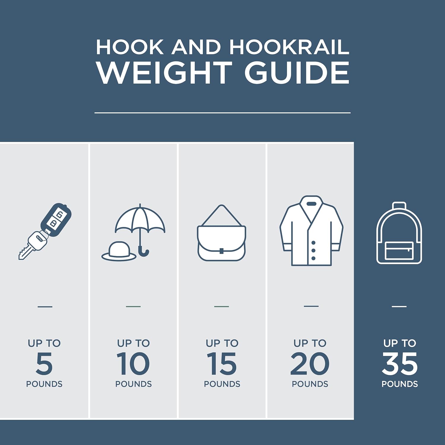 • STURDY: Rail weight capacity is 35 lbs. when mounted properly