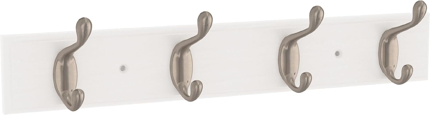 FRANKLIN BRASS Casual Curve Wall Mounted Pure White 16 in. Coat Rack, 4 Nickel Hooks, B46717K-PMN-C