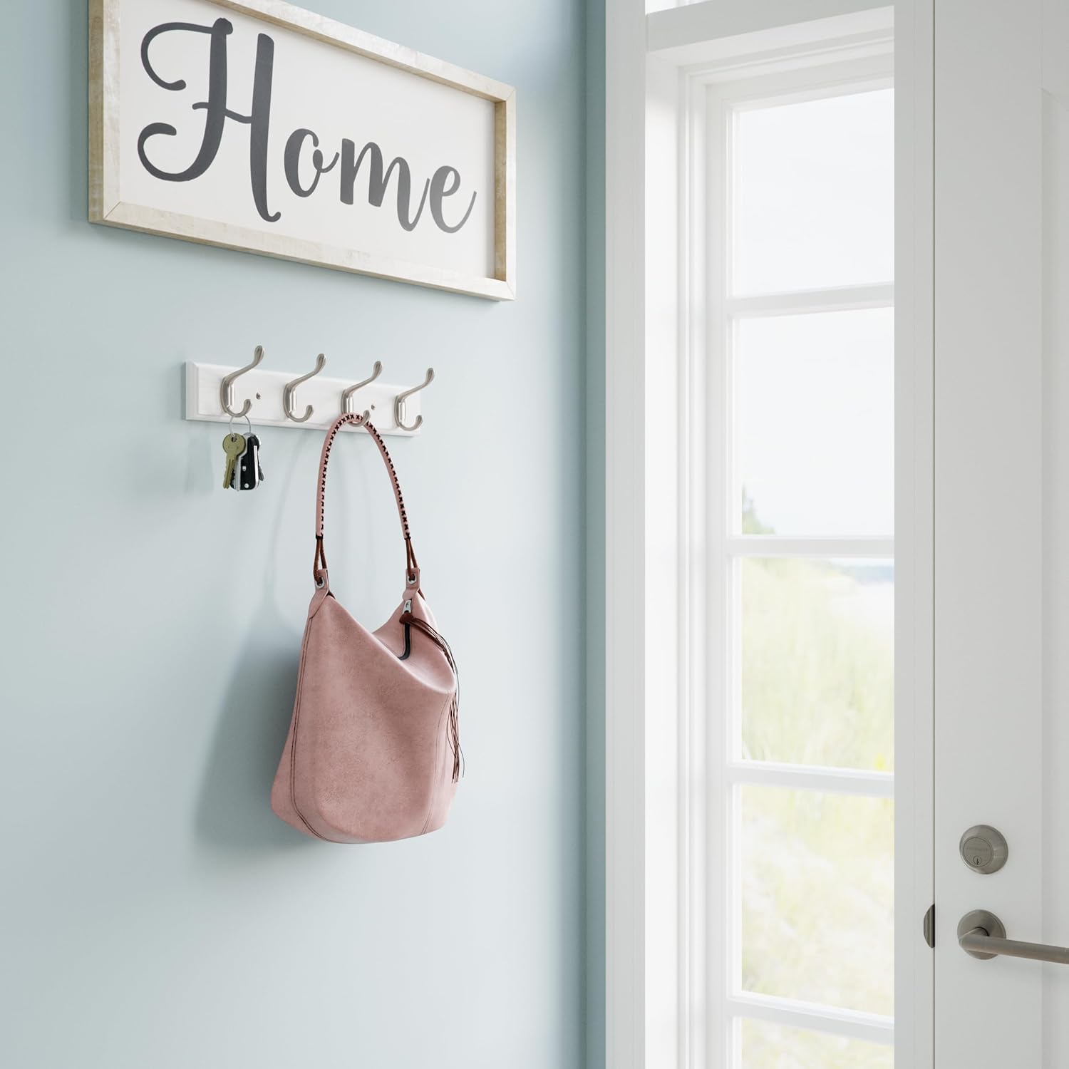 FRANKLIN BRASS Casual Curve Wall Mounted Pure White 16 in. Coat Rack, 4 Nickel Hooks, B46717K-PMN-C2