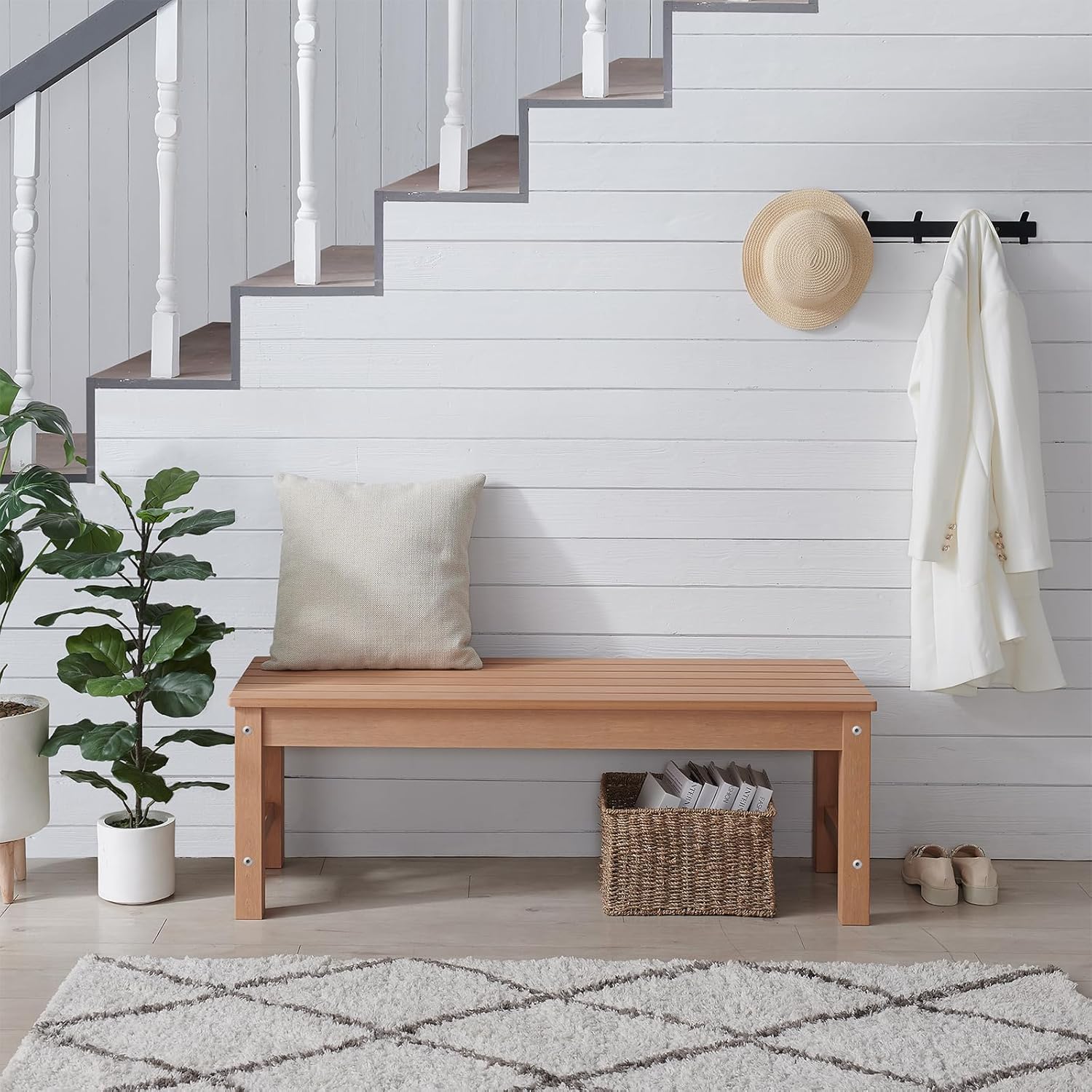 • Just Like Real Wood- Psilvam patio bench adopt unique wood-like color technology, we abandon the exaggerated wood grain of traditional poly lumber, just to show the most real and pure wood texture, it is difficult to distinguish the difference between our products and high-grade solid wood.
