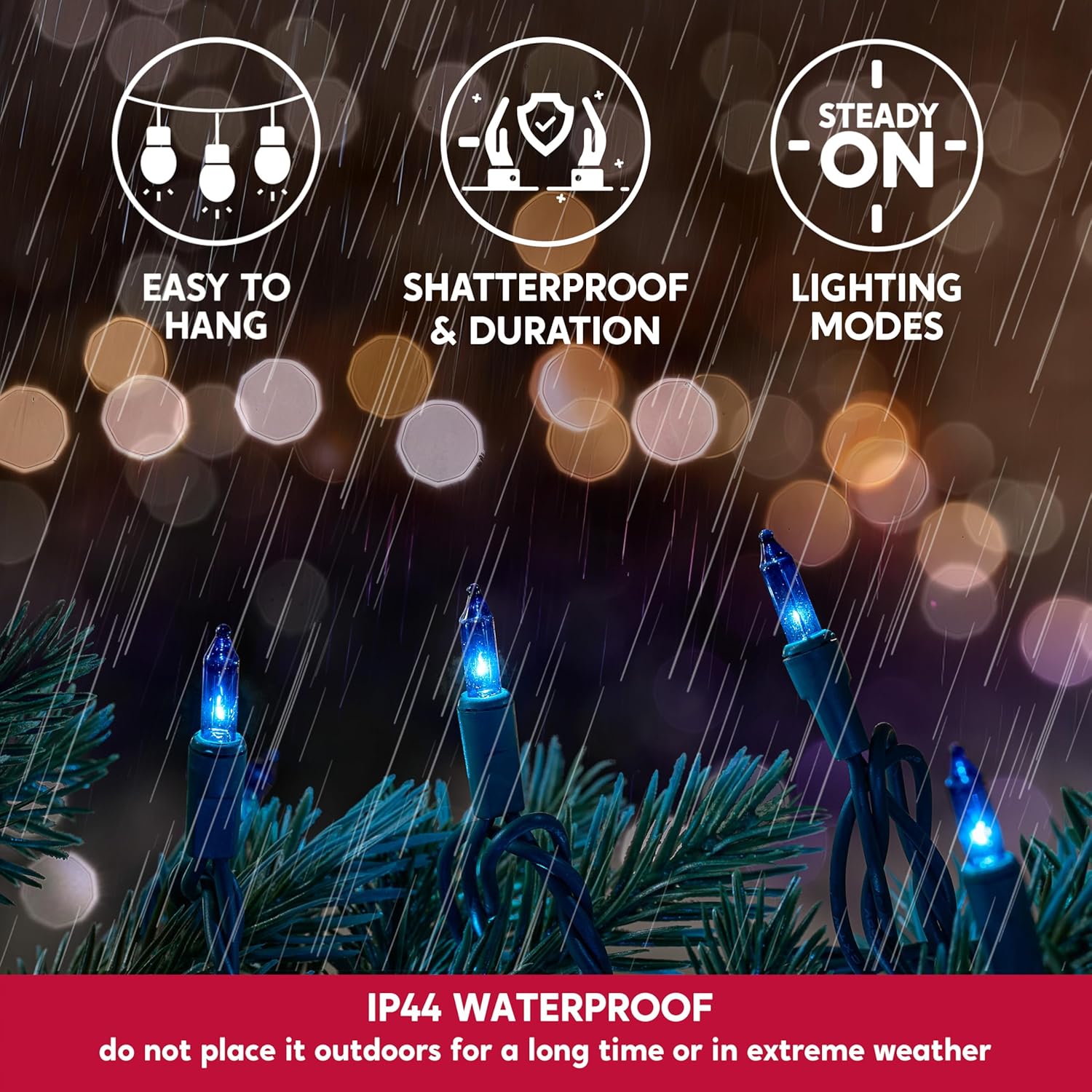 • <p>PREMIUM QUALITY. Our Xmas blue Christmas String Lights are designed with strong durability to accommodate harsh weather conditions. The high efficiency Christmas lights are environment-friendly and save power for you! Includes spare bulbs, flashers, and fuses. If one bulb burns out, the others stay lit.