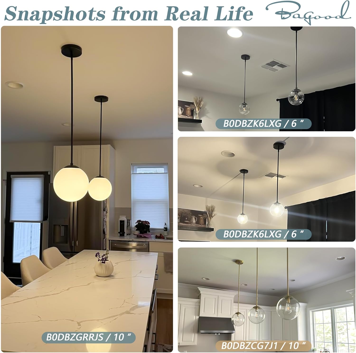 • [ Wide Application ] This gold globe pendant light is simple, stylish and rustic, suitable for a wide range of scenes, and also a modern and sophisticated decorative piece. Suitable for kitchen island, dining room, living room, bedroom, kitchen, coffee bar, lobby, dining room and any space you like.