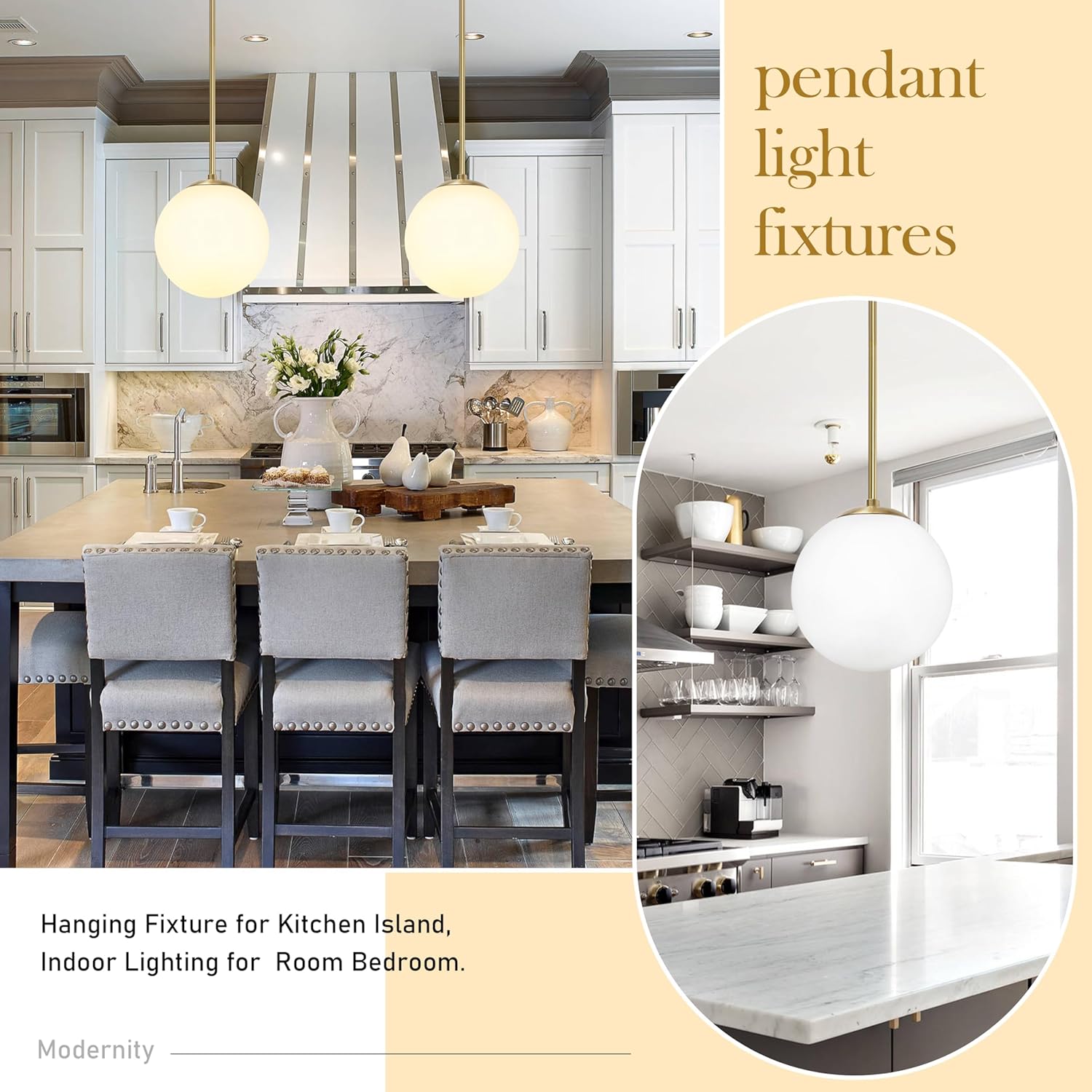 10 Inch Globe Pendant Light Gold Mid Century Pendant Light Contemporary Globe Pendant Lights Adjustable Hanging Light Fixture Milk Glass with Brass Finish for Dining Room Kitchen Island