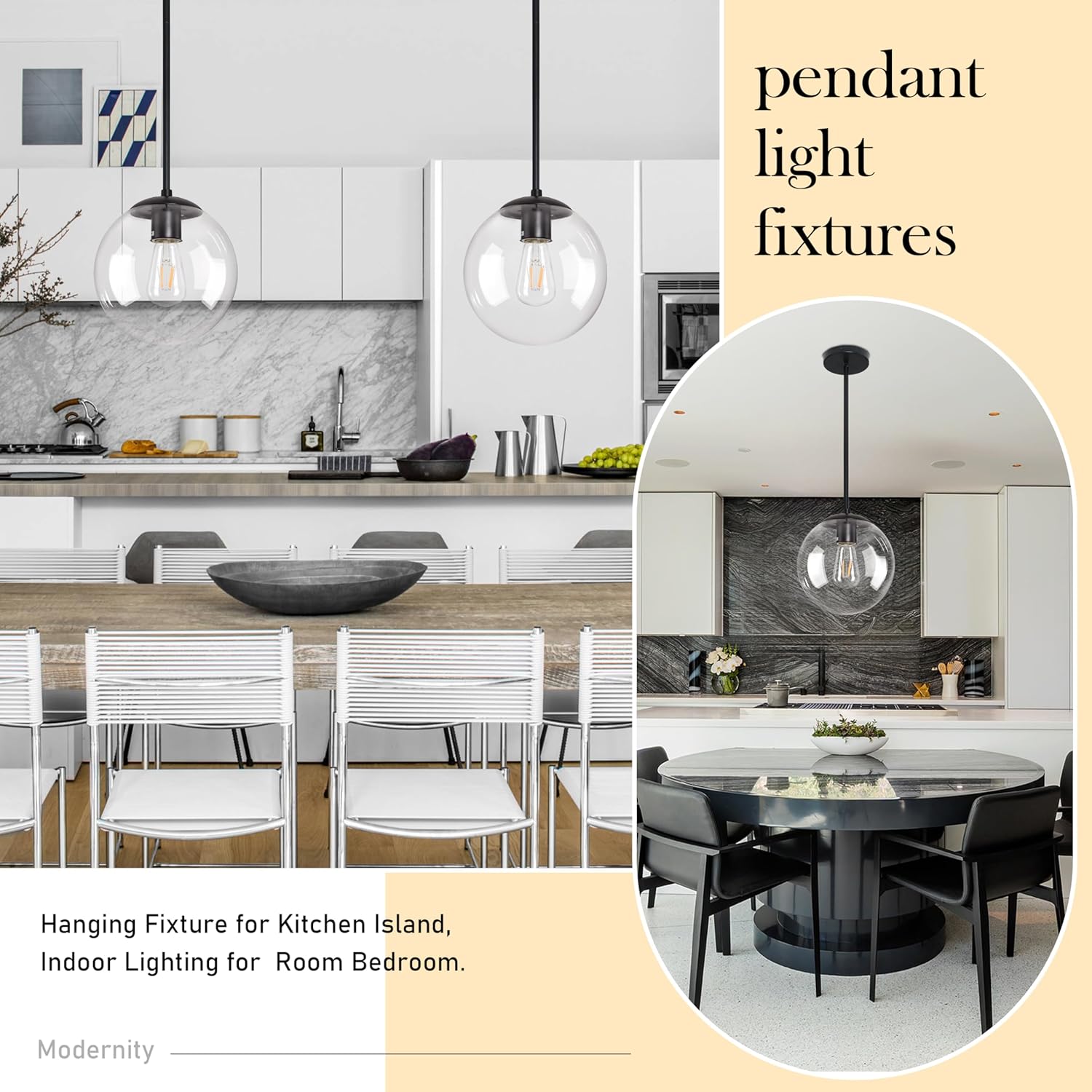 • [ Wide Application ] This black clear globe pendant light is simple, stylish and rustic, suitable for a variety of scenarios and a modern and sophisticated decorative piece. Suitable for kitchen island, dining room, living room, bedroom, kitchen, coffee bar, lobby, dining room and any space you like.