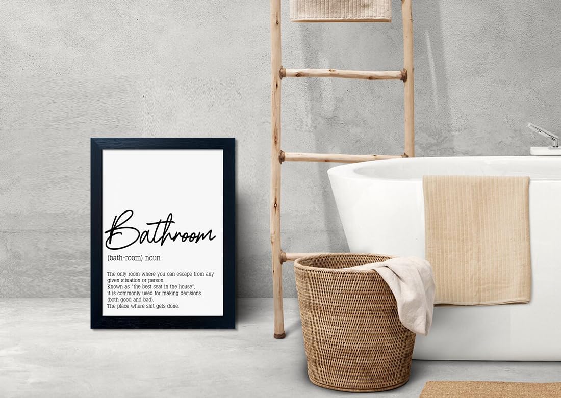 • 【About Size】8"W x 10"L (20cm x 25cm). Bathroom quotes wall decor, this small black framed wall art makes your bathroom more vibrant and creative, is a perfect wall decorations for bathroom, restroom, also suitable for kids bathroom decor.
