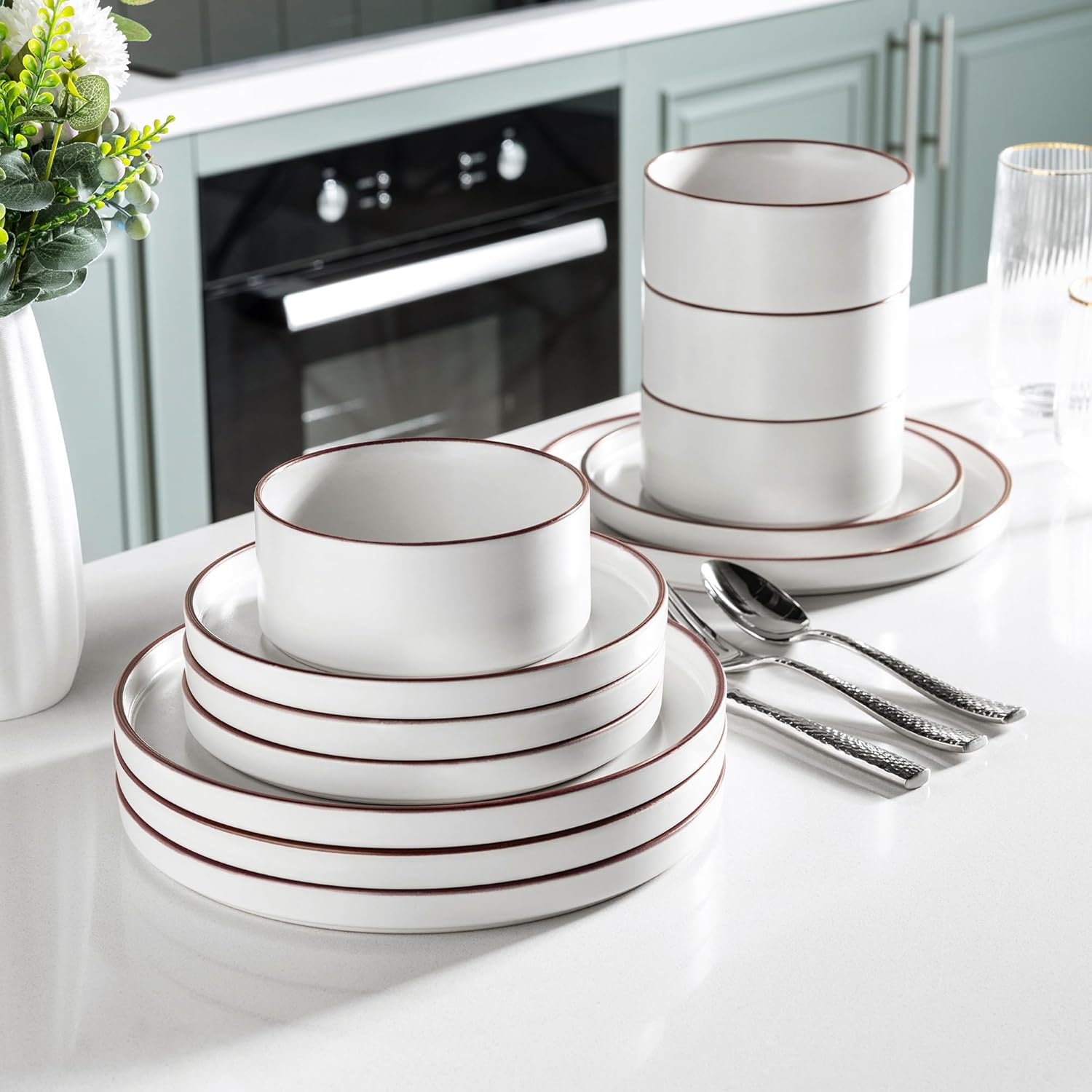 - 【LEAD FREE EAT SAFTY】Our plates and bowls set is made of druable material and features an all-natural glaze that is lead-free, cadmium-free. The set is fired at a high temperature of 2340℉ for 17 hours to ensure its durability and safety. With this dinnerware set, you'll never have to worry about any health problems.