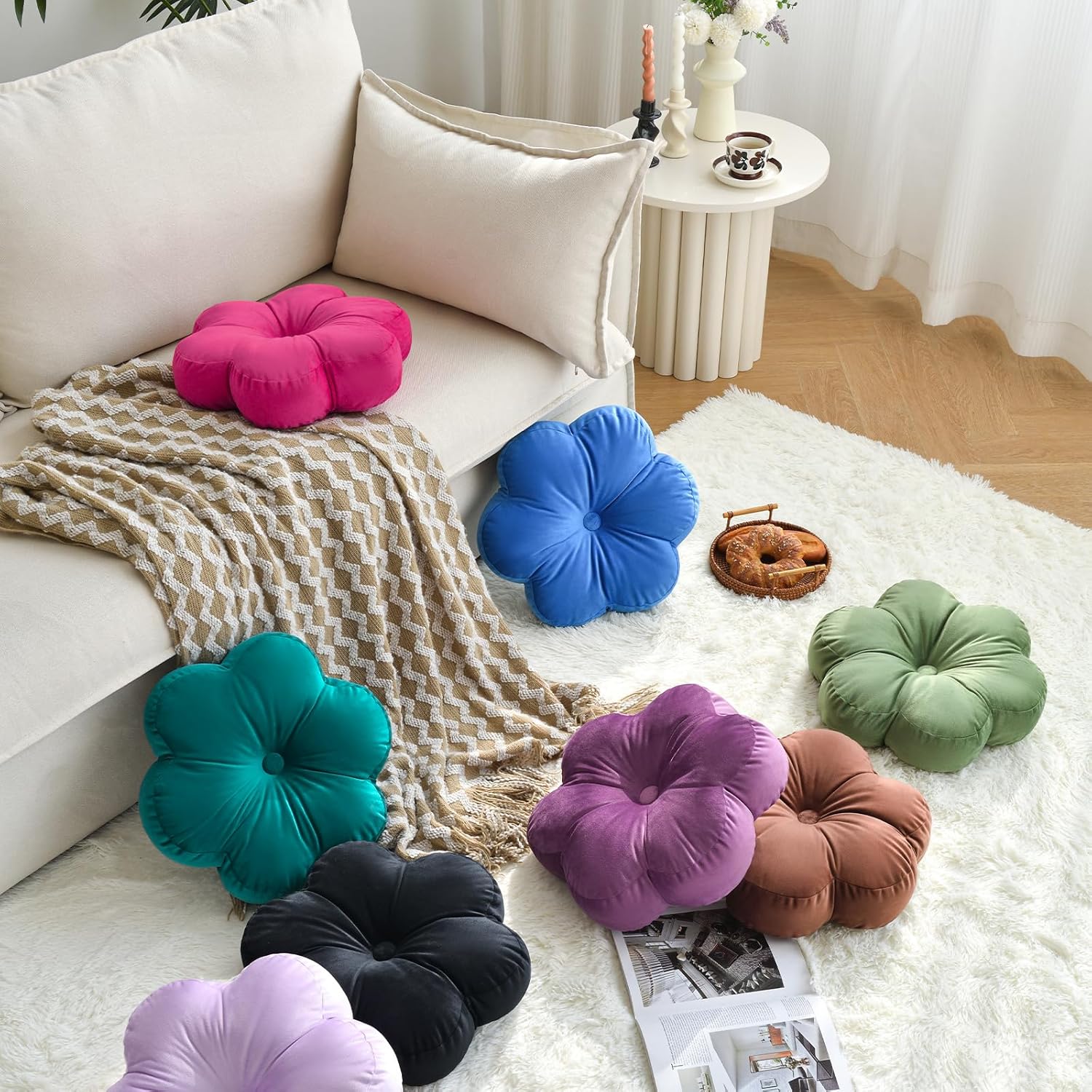 • Quality Material: The 15 inches flower pillow decorative floor cushion is made of velvet fabric, fully filled with high-quality PP cotton, soft to the touch, full in shape and not easily deformed.