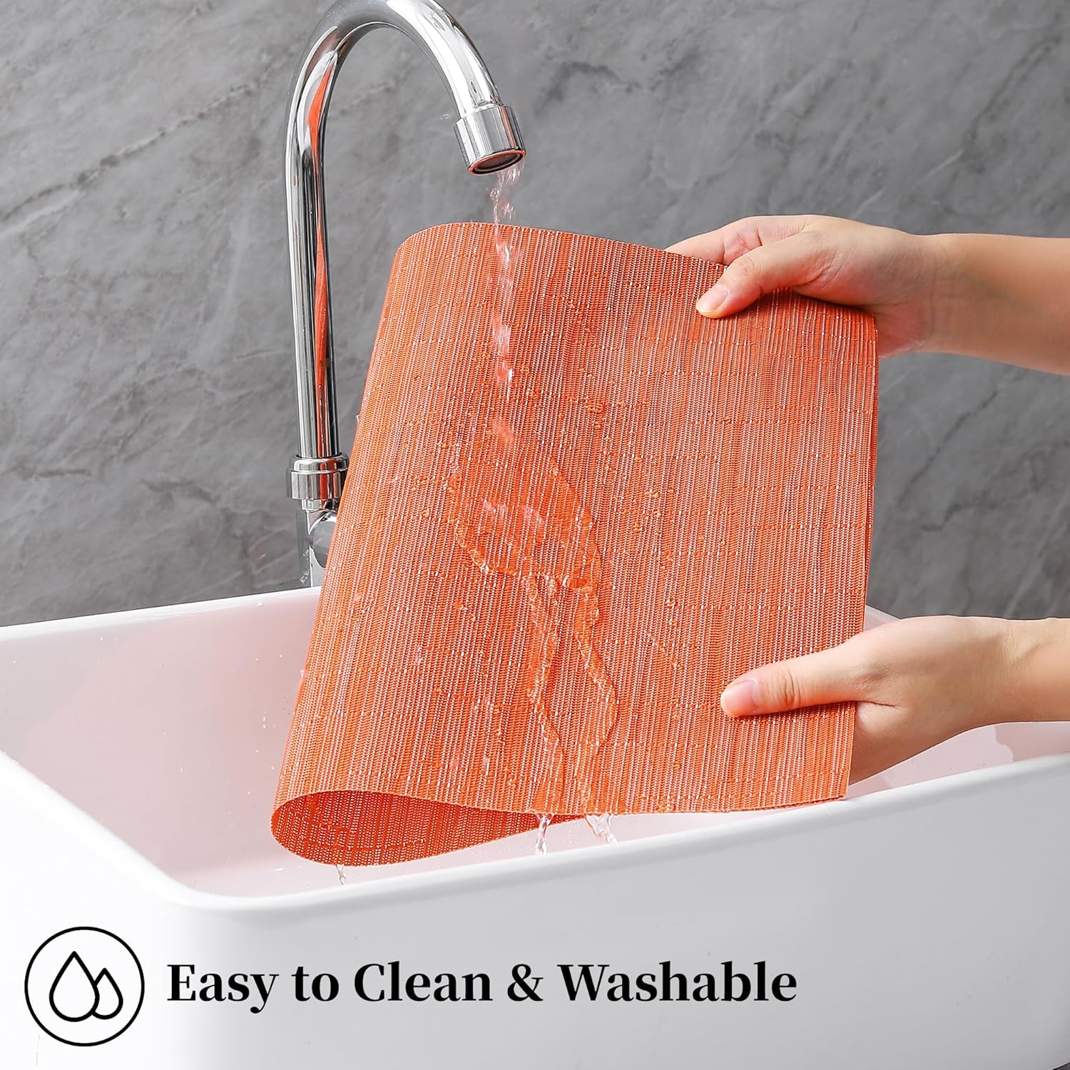 • Elegant and Practical Design: With a luxurious vinyl woven texture, precision cutting, and heat-trimmed edges, our double-sided placemats offer a sophisticated and practical solution. They provide a non-slip surface, resist fading, and are easy to clean, elevating your dining experience