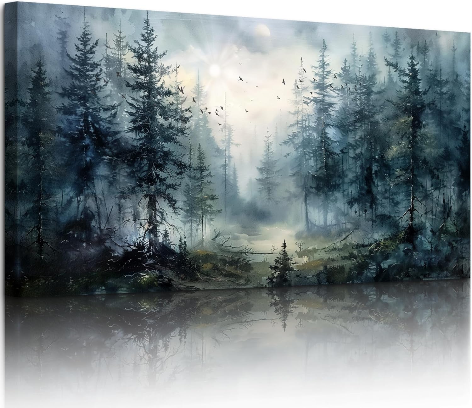 • Foggy Forest: In the depths of the misty forest, flocks of birds soar through the air while sunlight pierces the clouds, dispelling the solitude. This landscape wall art ignites curiosity and evokes a sense of inner relaxation and serenity