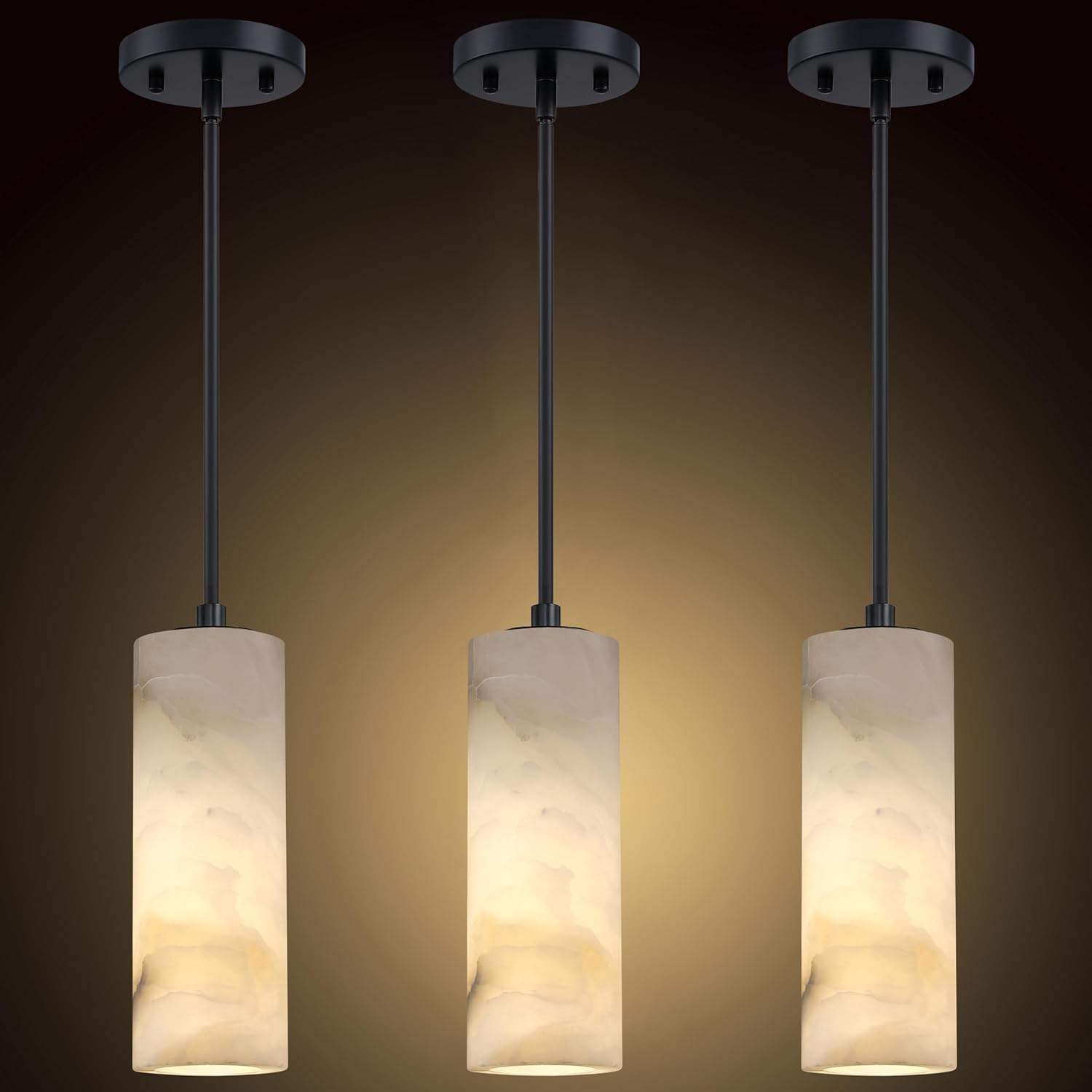 1 Light Modern Industrial Farmhouse Hanging Kitchen Island Pendant Ceiling Light Fixture,Cylinder Natural Alabaster Marble Black Finish Over Sink Restaurant bar Corridor