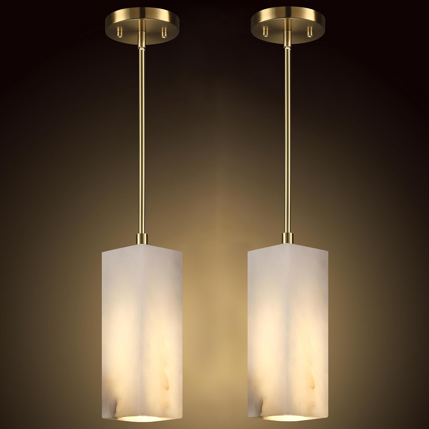 1 Light Modern Industrial Farmhouse Hanging Kitchen Island Pendant Ceiling Light Fixture,Square Natural Alabaster Marble Brushed Bronze Finish Over Sink Restaurant bar Corridor