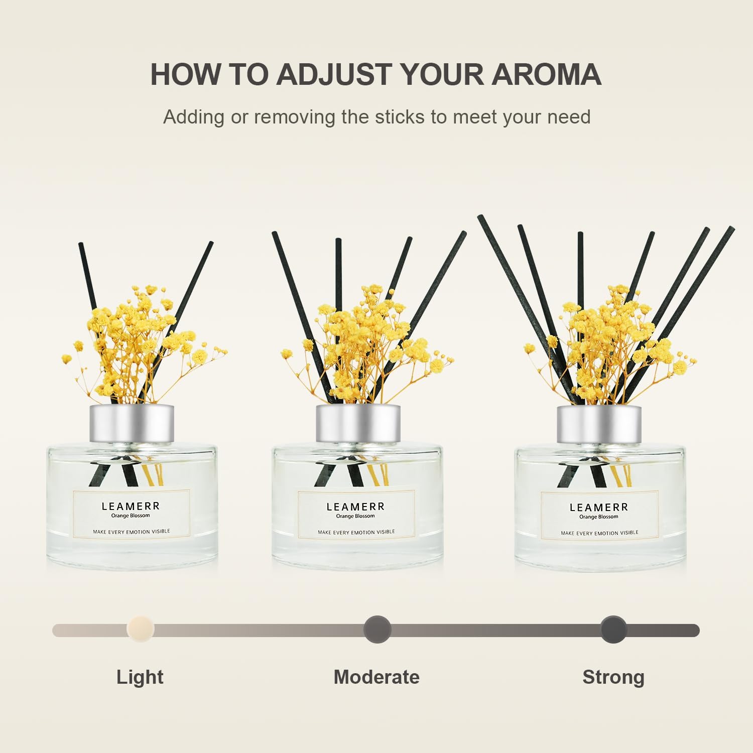 • Fragrant Ambiance: This reed diffuser emits a captivating orange blossom aroma to fill your living space with a refreshing, uplifting fragrance.