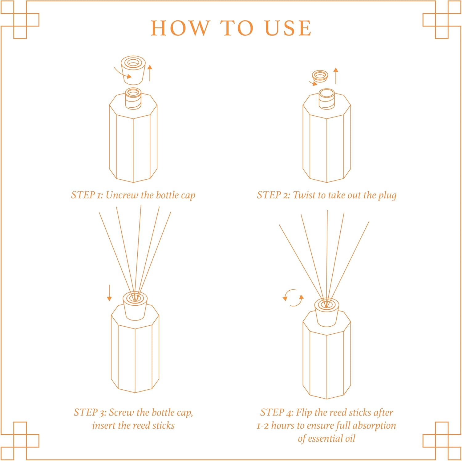• Reed Diffuser Set Includes: 1 glass bottle containing 200 ml / 6.76 fl oz oil; 5 oil diffuser sticks (Aroma amount can be adjusted by the number of sticks inserted)