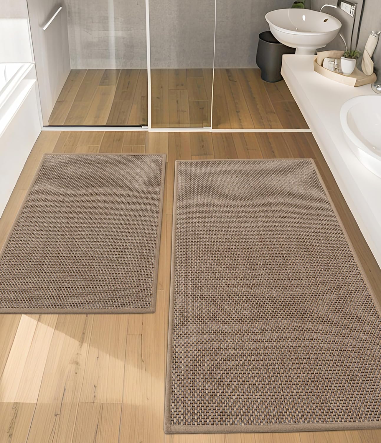 • Upgraded Easy jute Desgin: This bath mat is power-loomed with upgraded yarns-Integrating decoration and durability. The heavier and thicker threads are applied to make sure the pattern will be more durable and compact.