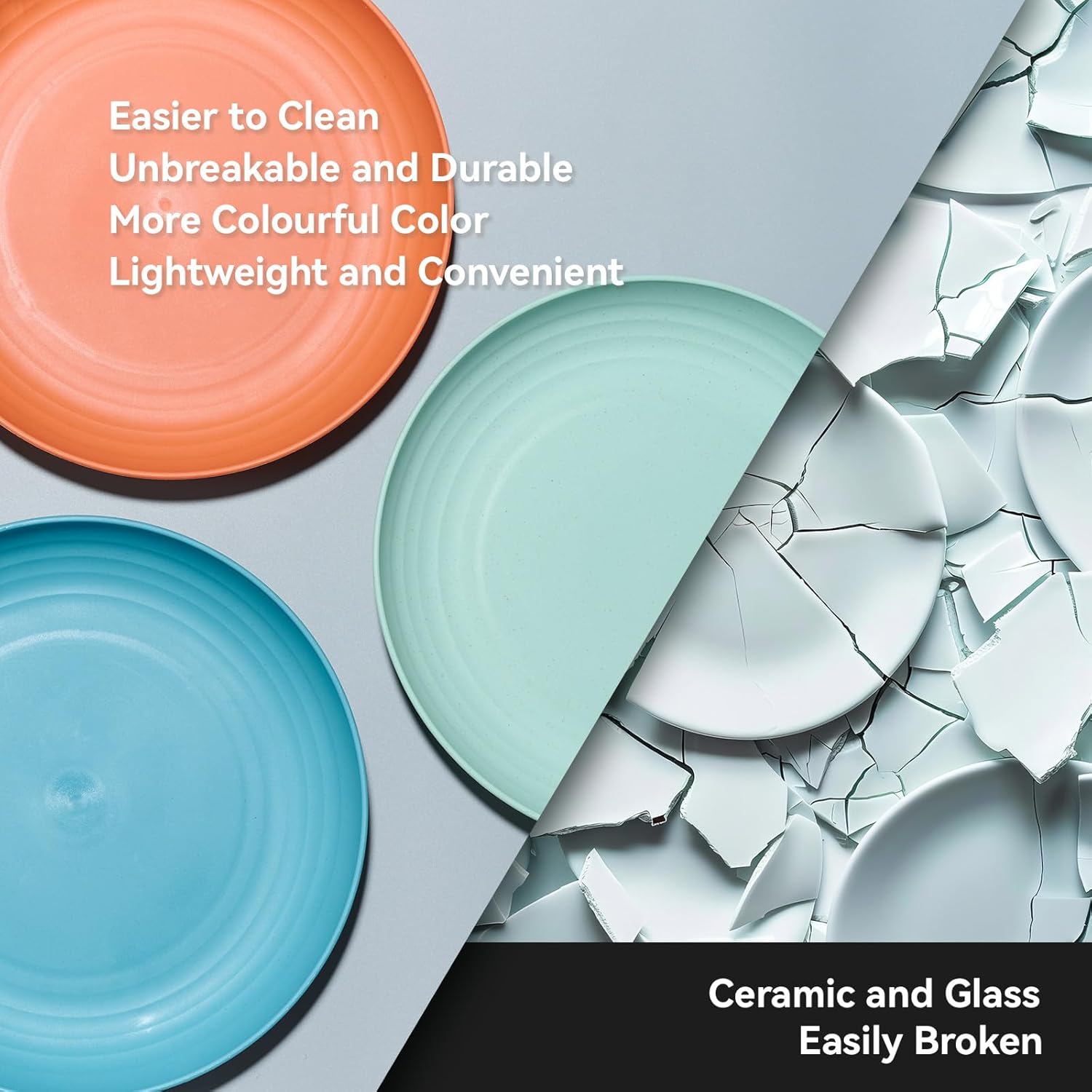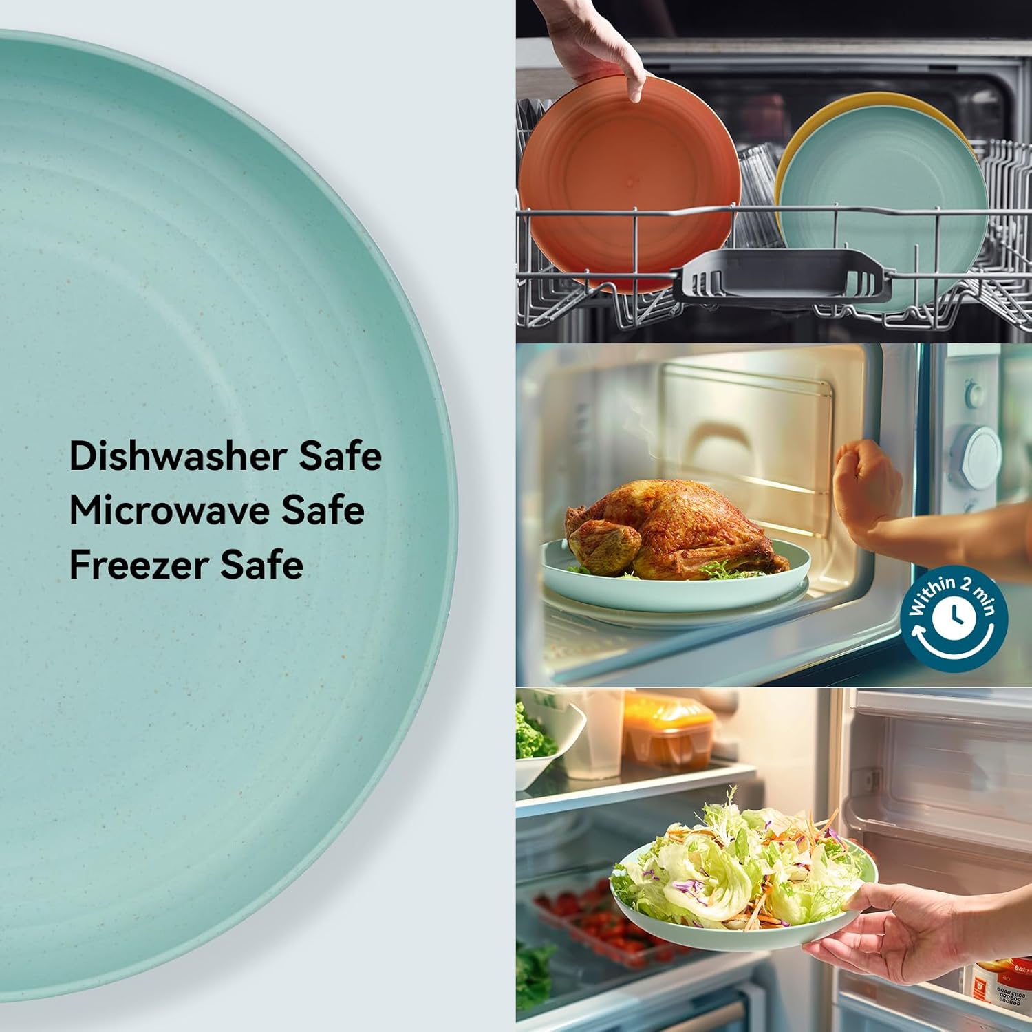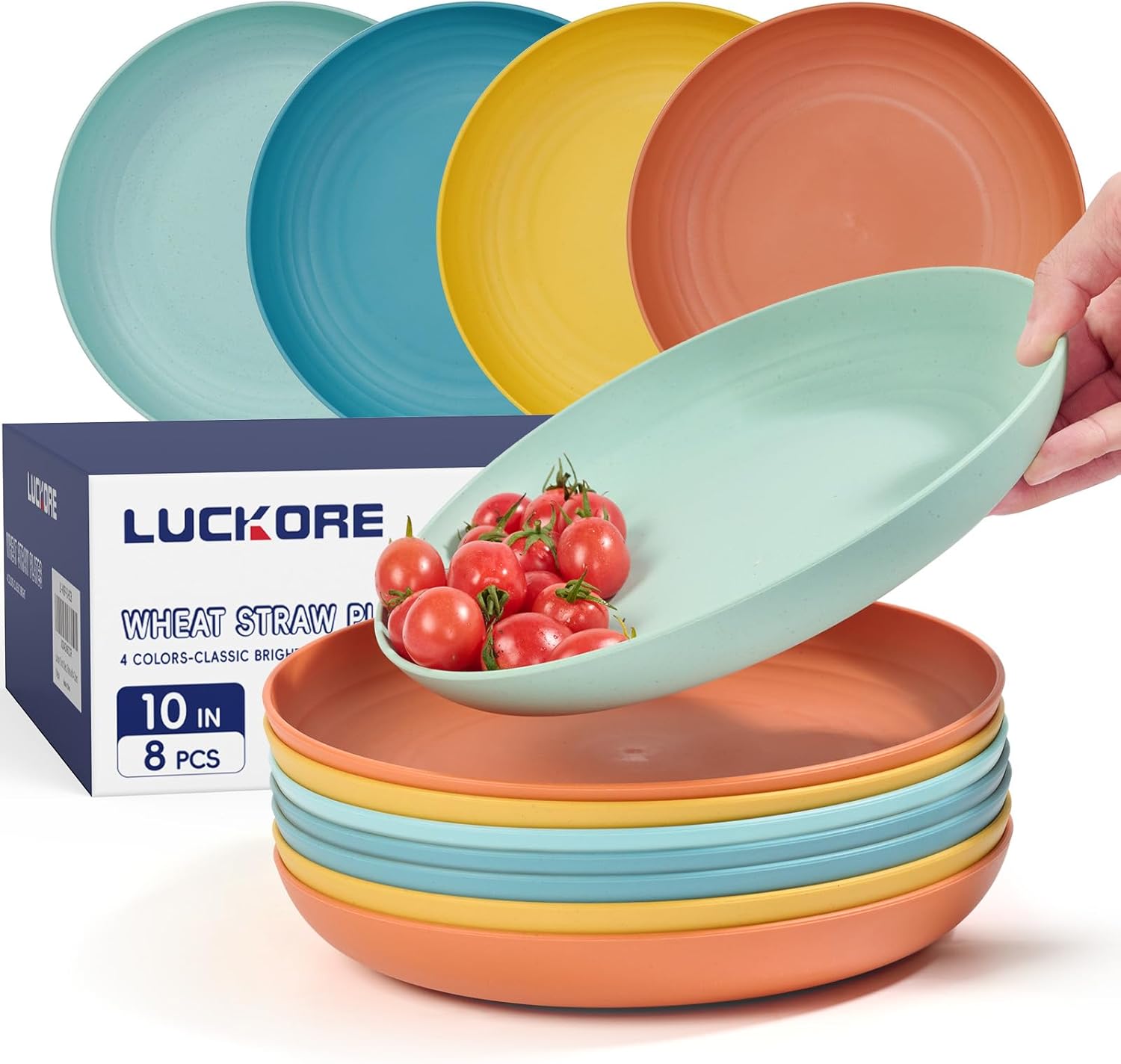 • Reusable & Colorful: This set comprises 8 wheat straw plates available in 4 vibrant colors (light green, blue, yellow, and orange), with 2 plates for each color. The harmonious combination of these colors can effectively improve your mood. With a generous capacity of 10 inches, these plates provide ample space to accommodate family dinners or gatherings