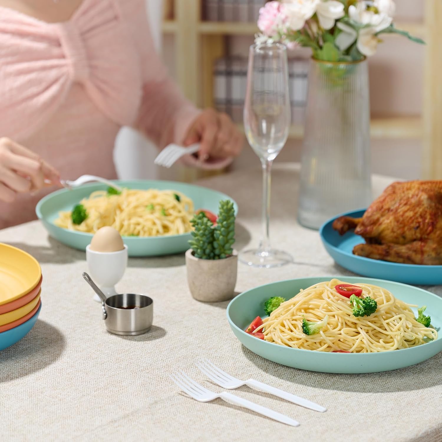 10 inch Deep Dinner Plates Set of 8 Wheat Straw Plates, Unbreakable Dinner Dishes Alternative for Plastic Microwave and Dishwasher Safe for Kitchen with 4 Colors Classic Bright