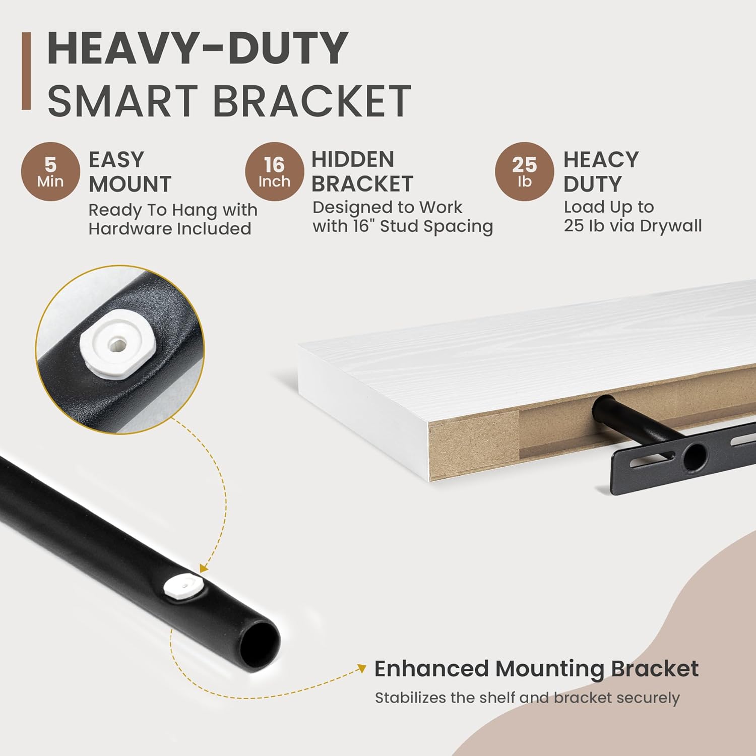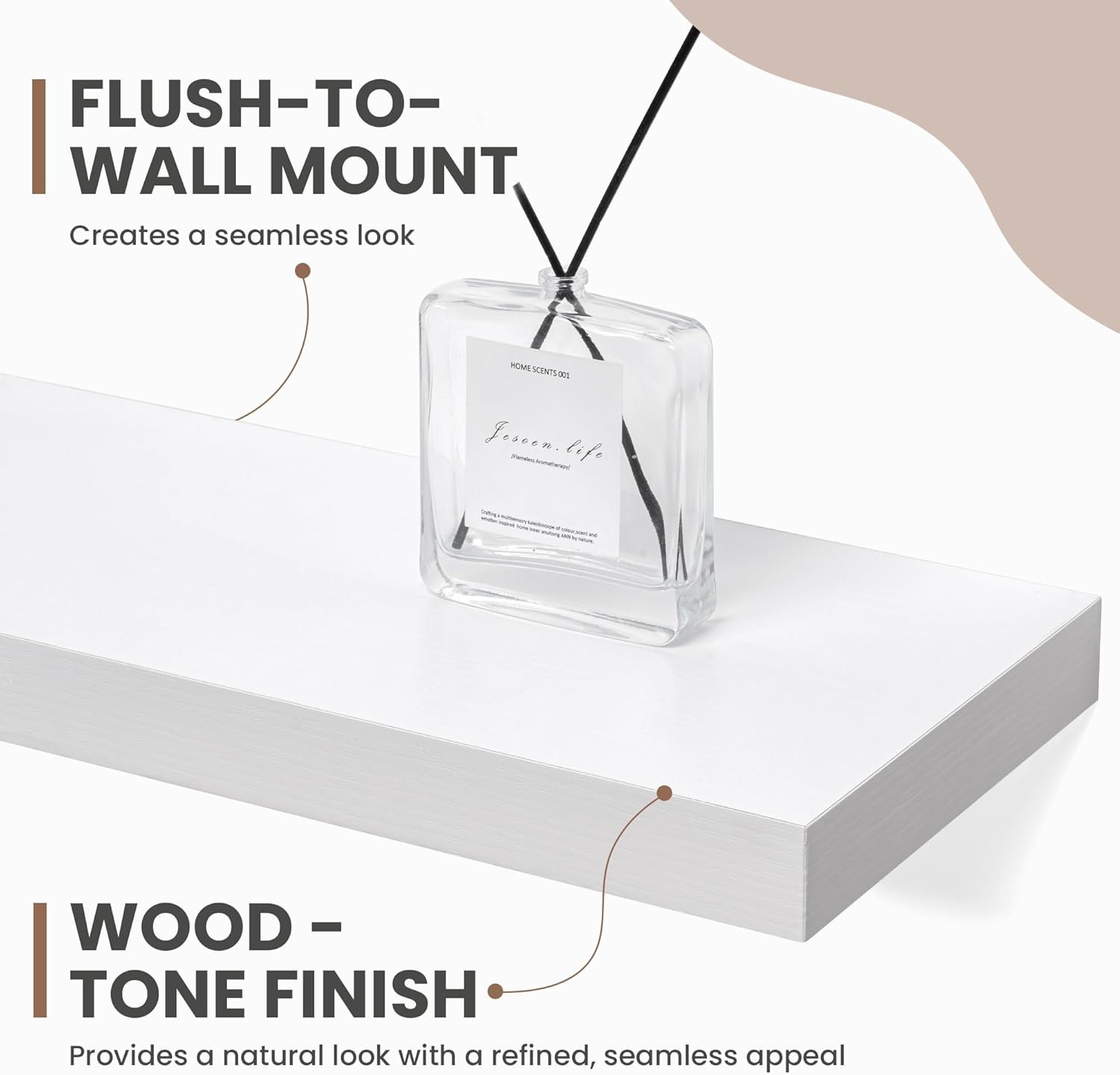 - [EASY INSTALLATION WITH FULL INSTRUCTIONS]: Our floating shelves come with all mounting hardware and an easy-to-follow guide, allowing for quick setup in less than 10 minutes. With step-by-step instructions, you can enjoy these beautiful shelves with minimal effort, adding an instant upgrade to your space.