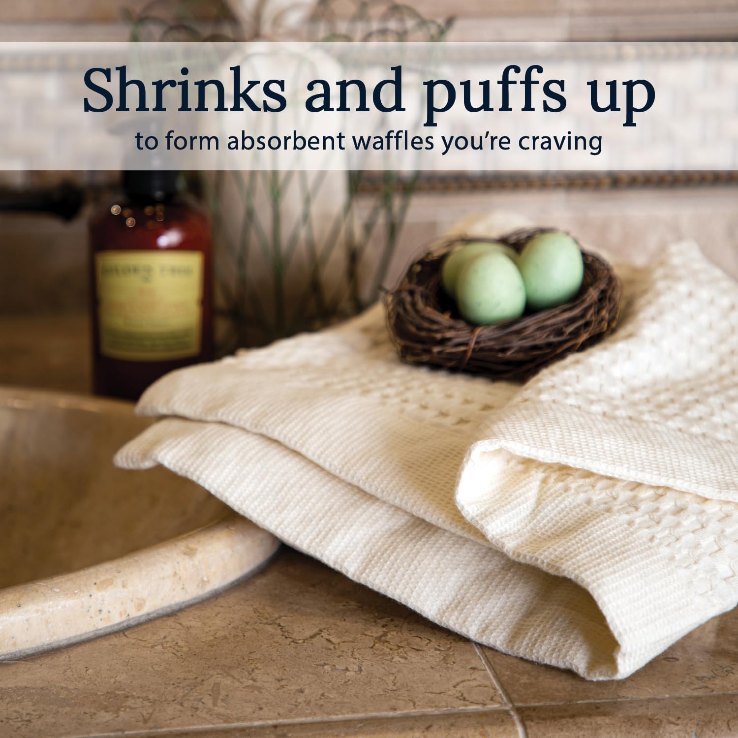 • Super Absorbent Hand Towels: Made from thirsty high quality cotton, they shrink to form deep honeycomb waffles that quickly wicks away moisture while providing a cozy, comfortable feel for drying hands.