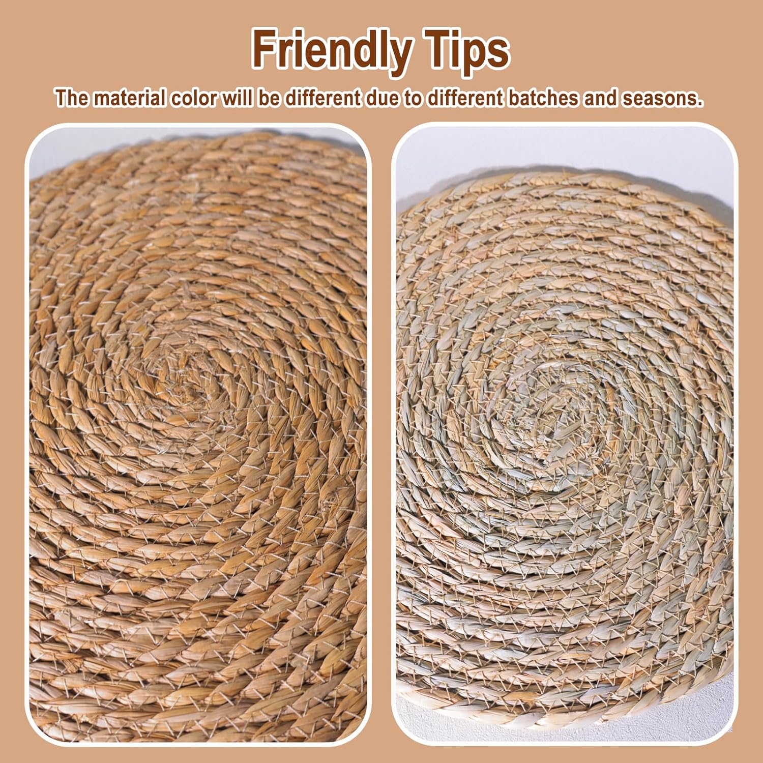 - Perfect Service: These woven round table mats are the perfect addition to your home décor and will bring warmth and depth to any table. The placemats are versatile can be used to protect your dining set and table or hang it on the wall for decoration. If you are not satisfied with these placemats, please do not hesitate to contact us, we will provide 100% satisfaction solution.