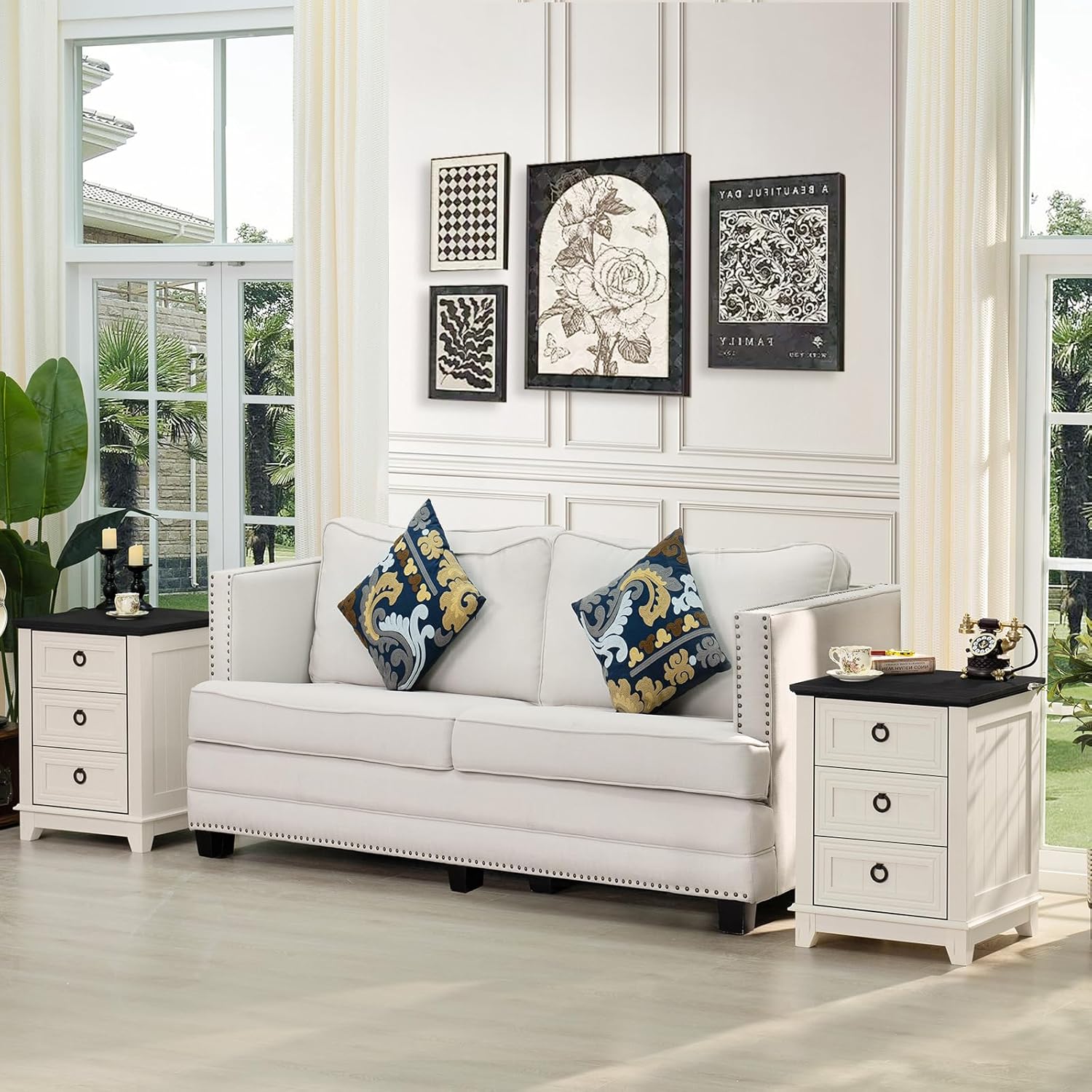 18" Farmhouse Night Stand with 3 Drawers, Wood End Table Dresser for Bedroom, White Nightstand, Bed Side Table with Metal Handle, Bedside Cabinet for Bedroom Living Room, Closet