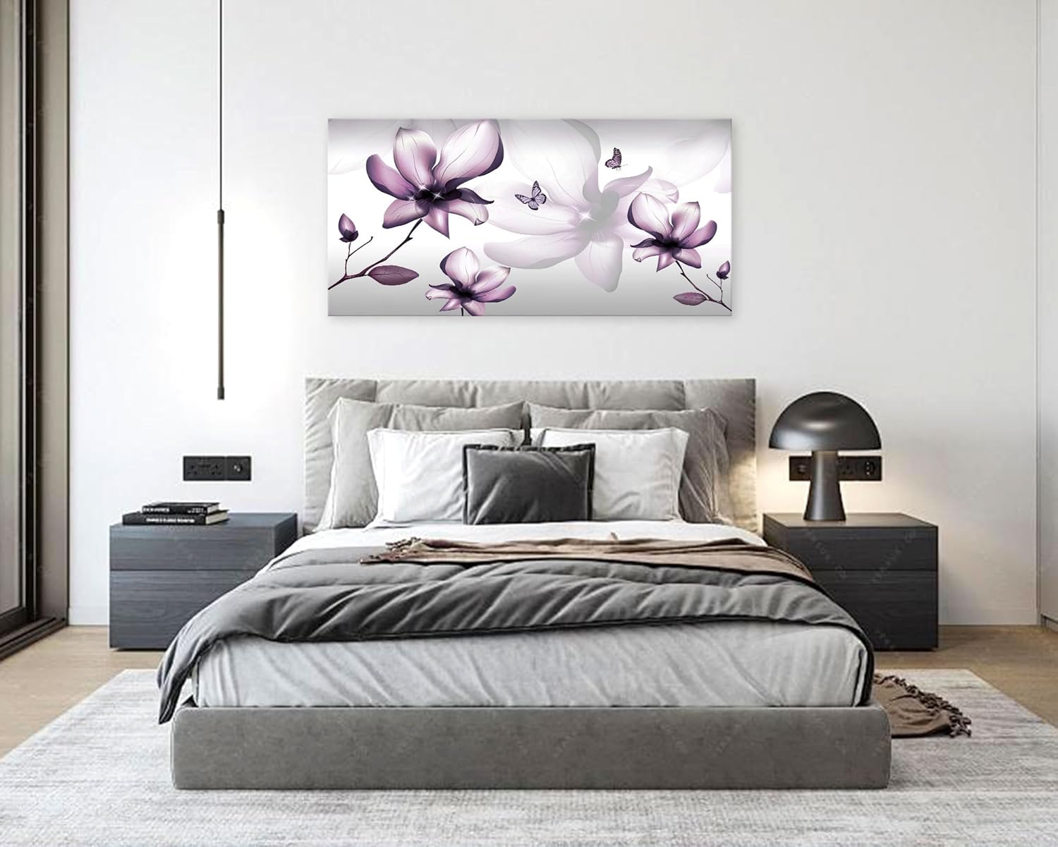 Muolunna BK06550 Purple Magnolia with Butterfly Flower Canvas Wall Art Picture 1 Panel 3D Wallpaper Modern Art Prints Painting for Bedroom Modern Office Wall Decor Artwork