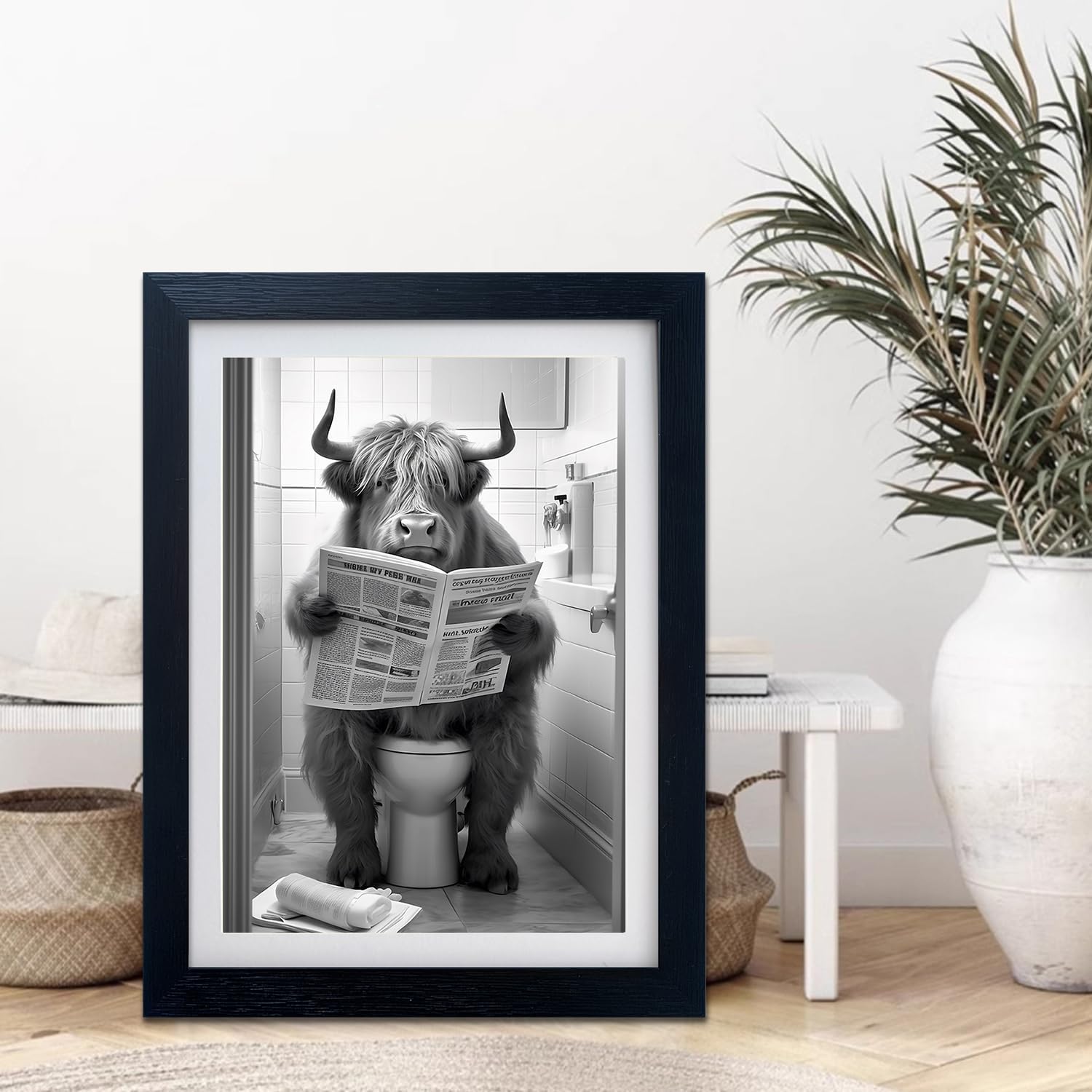 • UNIQUE HIGHLAND COW BATHROOM WALL ART: The black and white bathroom wall art is printed in high definition on premium water-proof canvas.