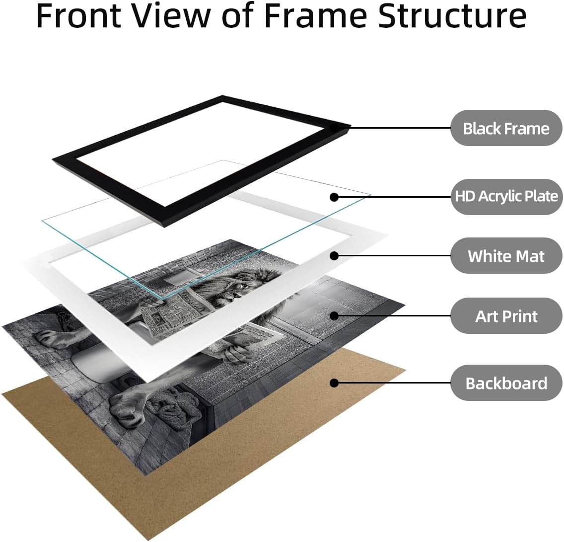 • FRAMED TOILET WALL ART SIZE: Black framed wall art by 11" x 14", funny bathroom wall art is suitable for bathroom decor.