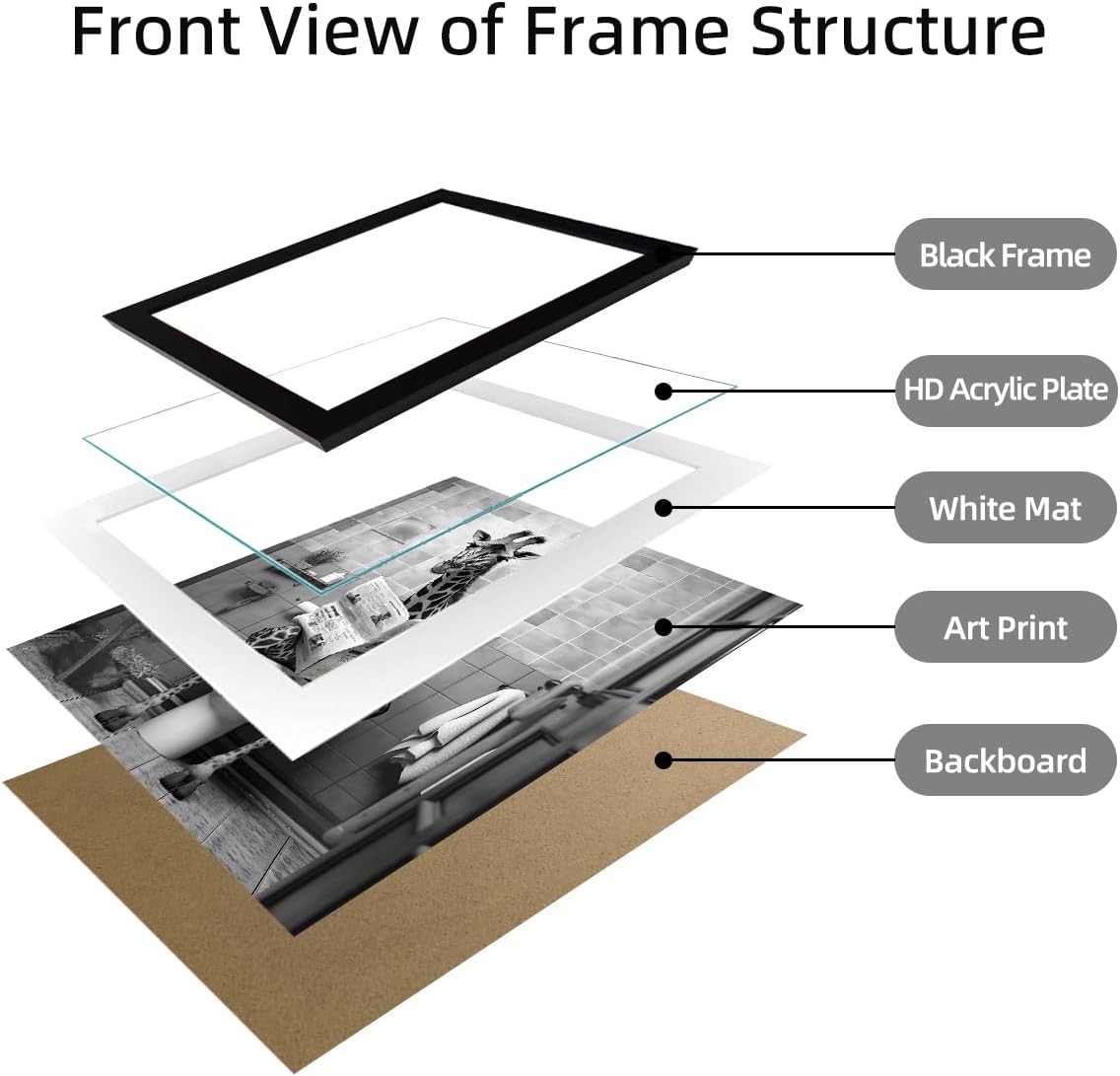 • FRAMED TOILET WALL ART SIZE: Black framed wall art by 8" x 10", funny bathroom giraffe wall art is suitable for bathroom decor.