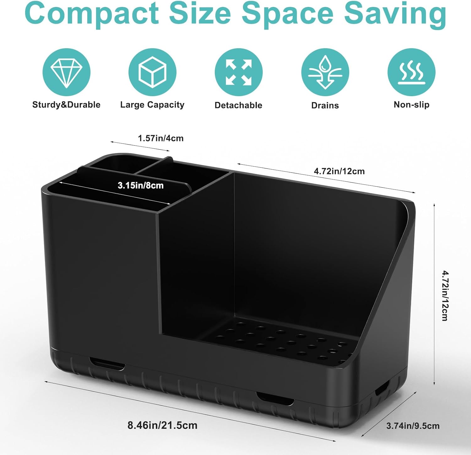 • DRAINAGE DESIGN: The bottom of our bathroom toothbrush holder is made with compartment heightening design and designed with many small holes for better drainage and breathability, avoiding moisture at the bottom of electric toothbrushes, toothpaste, and other bathroom items. Well ventilated to keep your bathroom countertop dry and tidy.