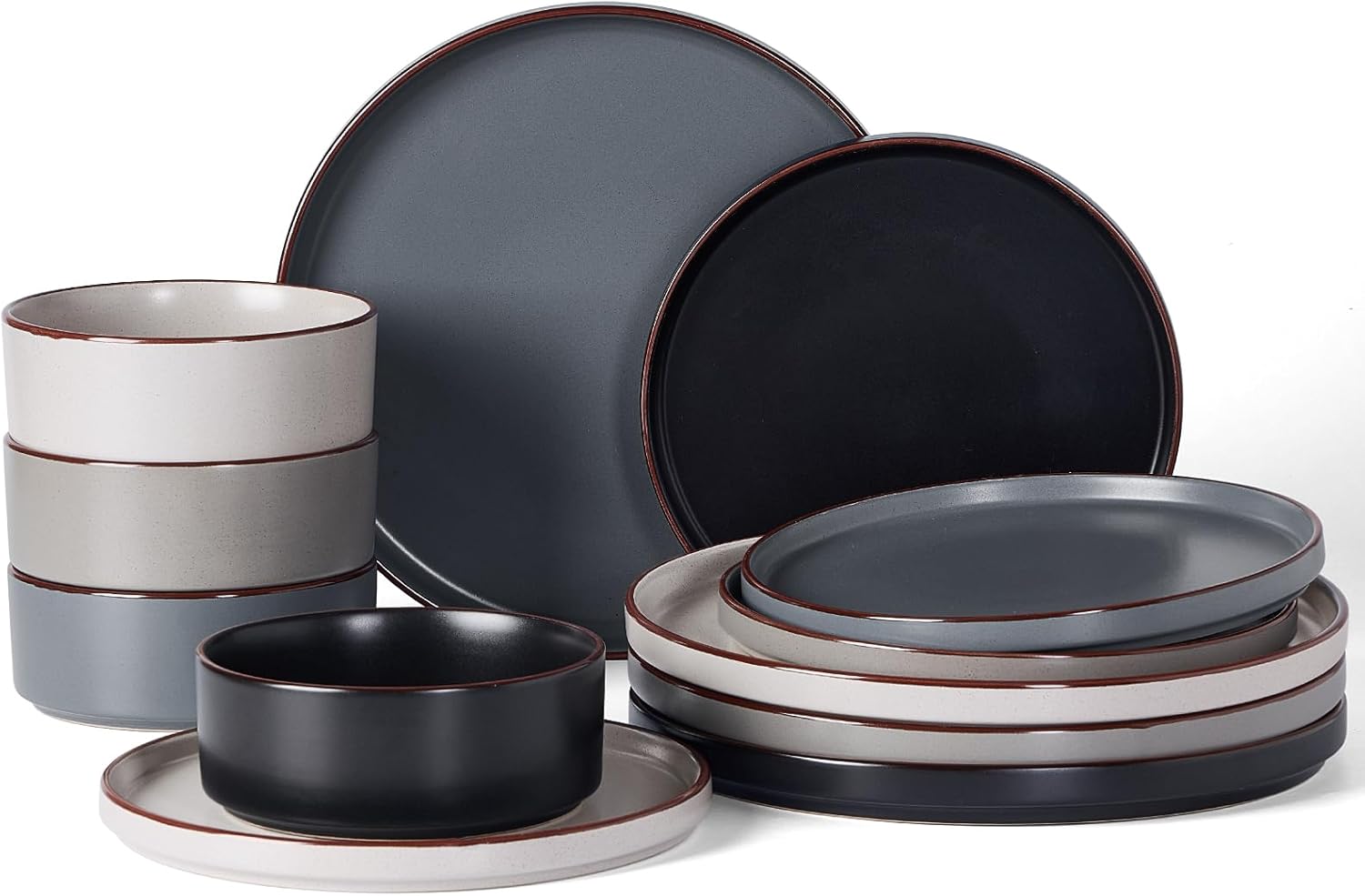 Famiware Nebula Ridge Stoneware Dinnerware Sets, Plates and Bowls Sets for 4, 12 Pieces Dishes Set, Microwave and Dishwasher Safe Kitchen Plates, Multi-color