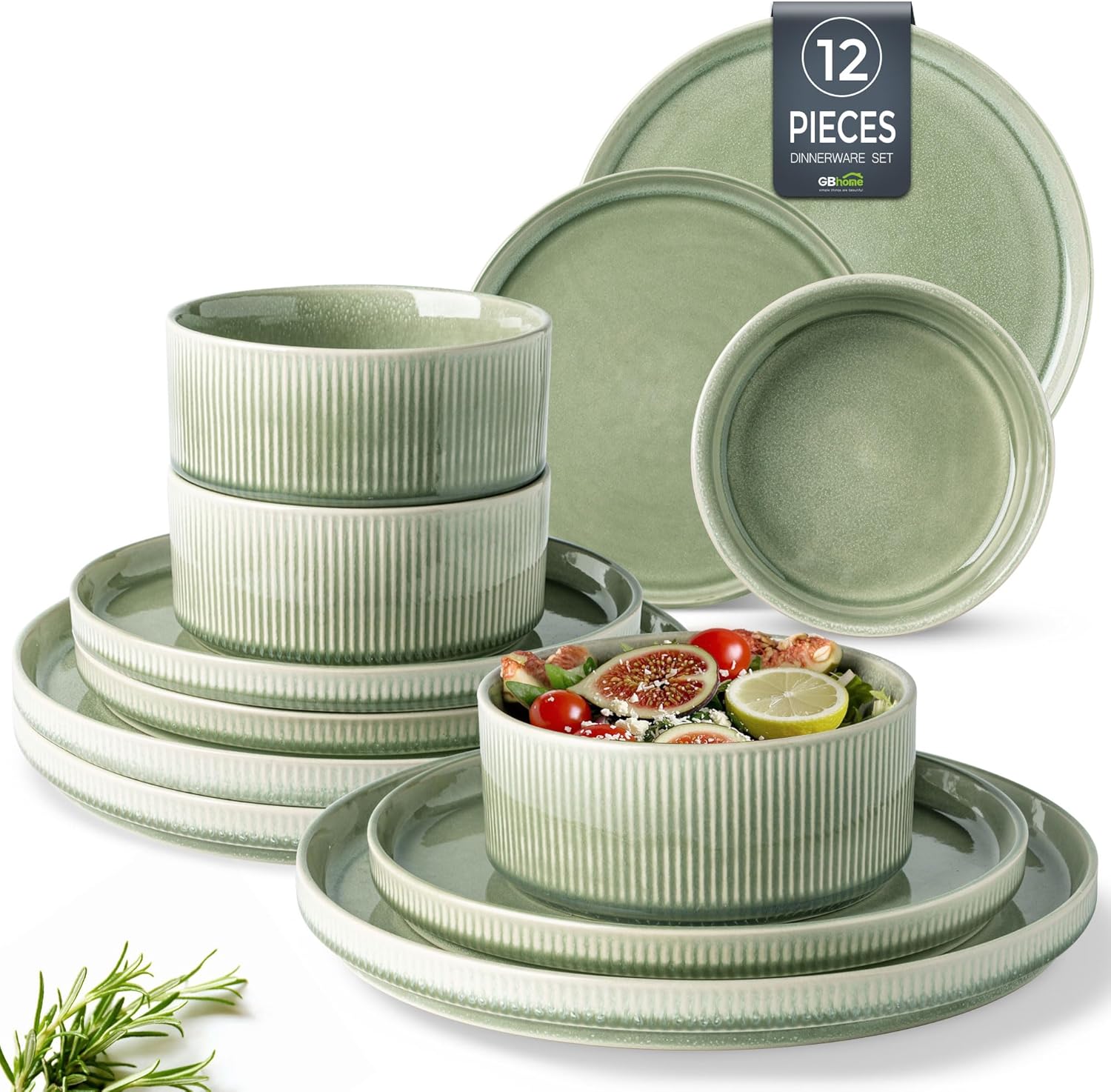 GBHOME Stoneware Dinnerware Sets for 4,Round Reactive Glaze Ceramic Plates and Bowls Set,Highly Scratch Resistant| Dishwasher & Microwave Safe Dishes Set,Service for 4(12Pcs)