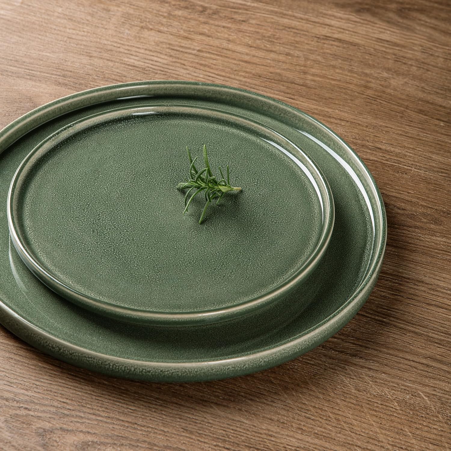 - GOOD SHAPE AND MULTI-PURPOSE: The flat dinner plate set creates a Rustic and minimalist table setting. The shape is as great as it makes. they are easier to handle and hold and they stack really well without taking up much space, stack and nestle nicely in your cupboard or shelves. Our Dinnerware set is microwave, dishwasher, and freezer safe, Perfect for everyday use, indoors or out; ideal for any kitchen It makes your food look even more delicious and makes you happy every day.