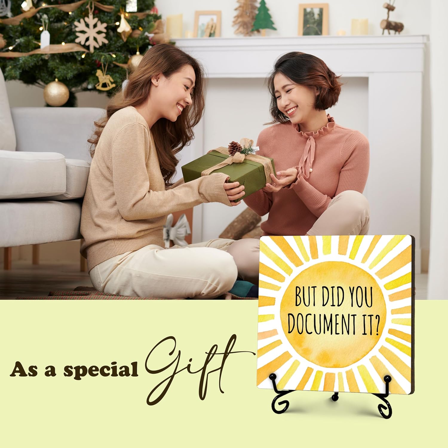 But Did You Document It Office Decor Wooden Sign Rustic Farmhouse Home Decor Inspirational Desk Decor Gifts for Women Men Coworkers Decorative Sign with Stand for Desk Accessories 5" x 5"-475