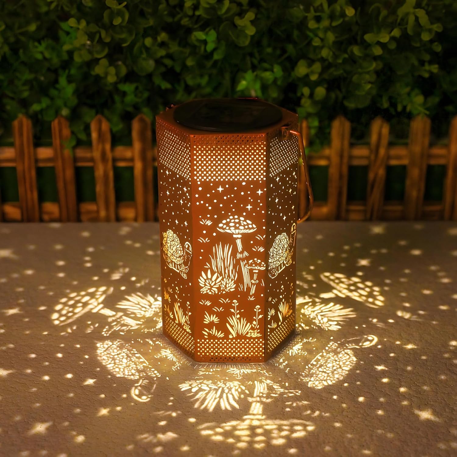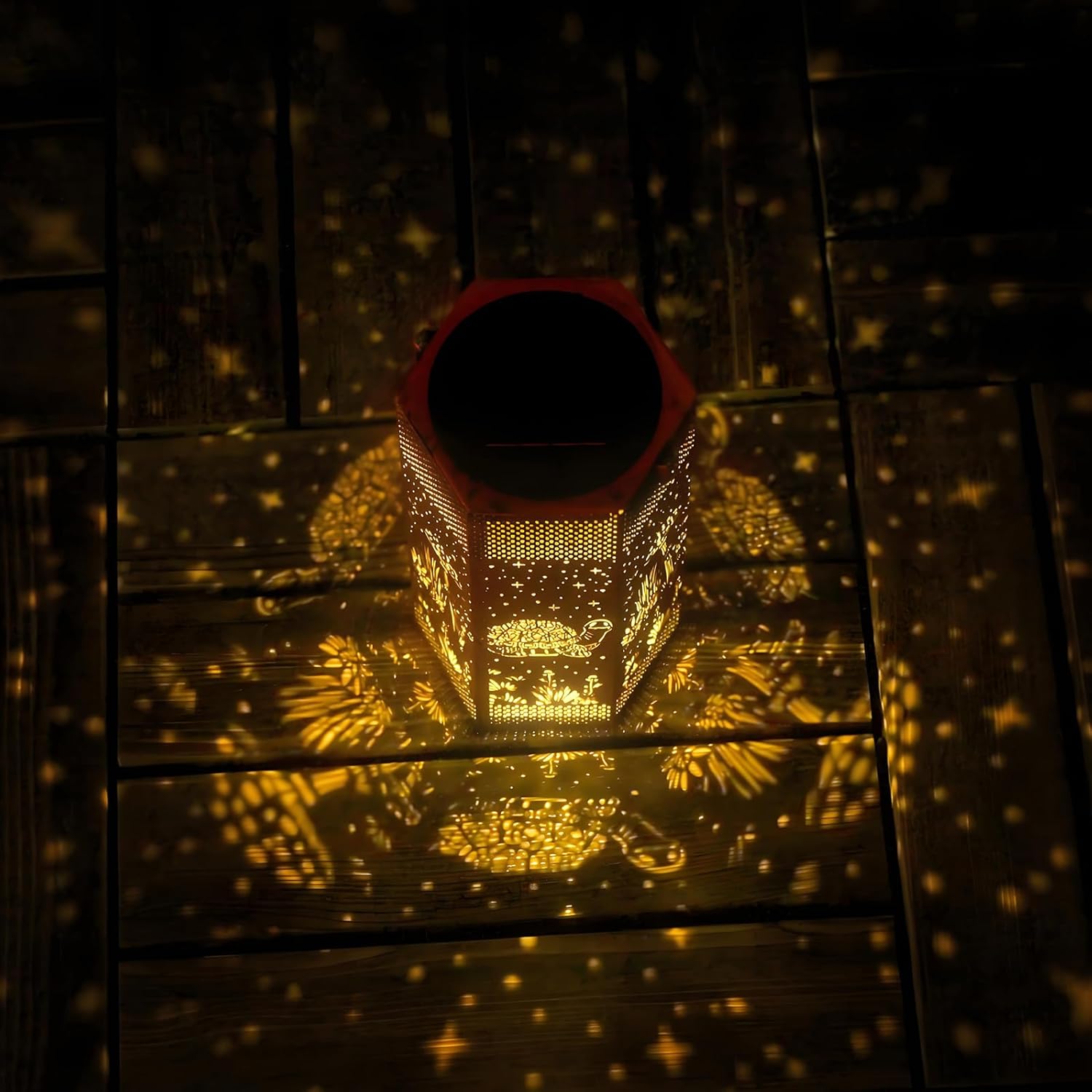 - Turtles Garden Decor - Opjoy Outdoor Turtles Solar Lanterns are crafted from upgraded durable metal, The retro appearance, with gold copper color and hollow out metal veneer, gorgeous color, casts bright and warm light in darkness, accompanied by gorgeous and graceful patterns, adding a beautiful atmosphere to the surrounding environment. Add illuminated charm to a garden, patio, porch and outdoor tabletop with these solar lights. Make your outdoor spaces unique and amazing